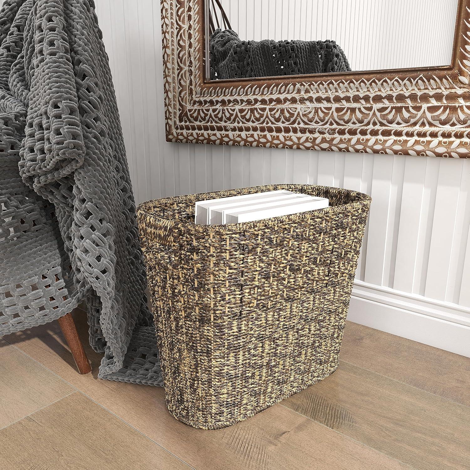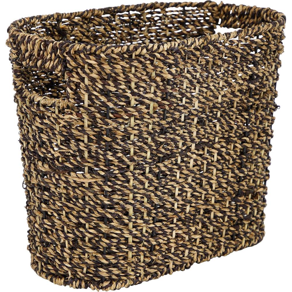 image:imageDeco 79 Seagrass Handmade Woven Single Slot Magazine Holder with Light Brown Accents 15 x 9 x 13 BrownWhite