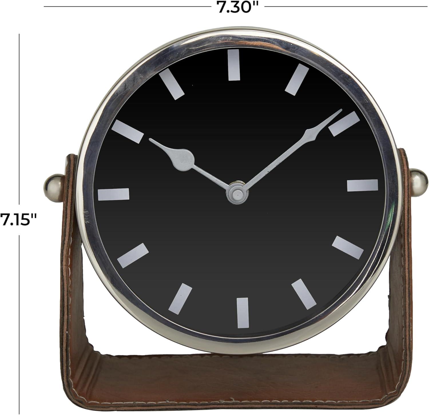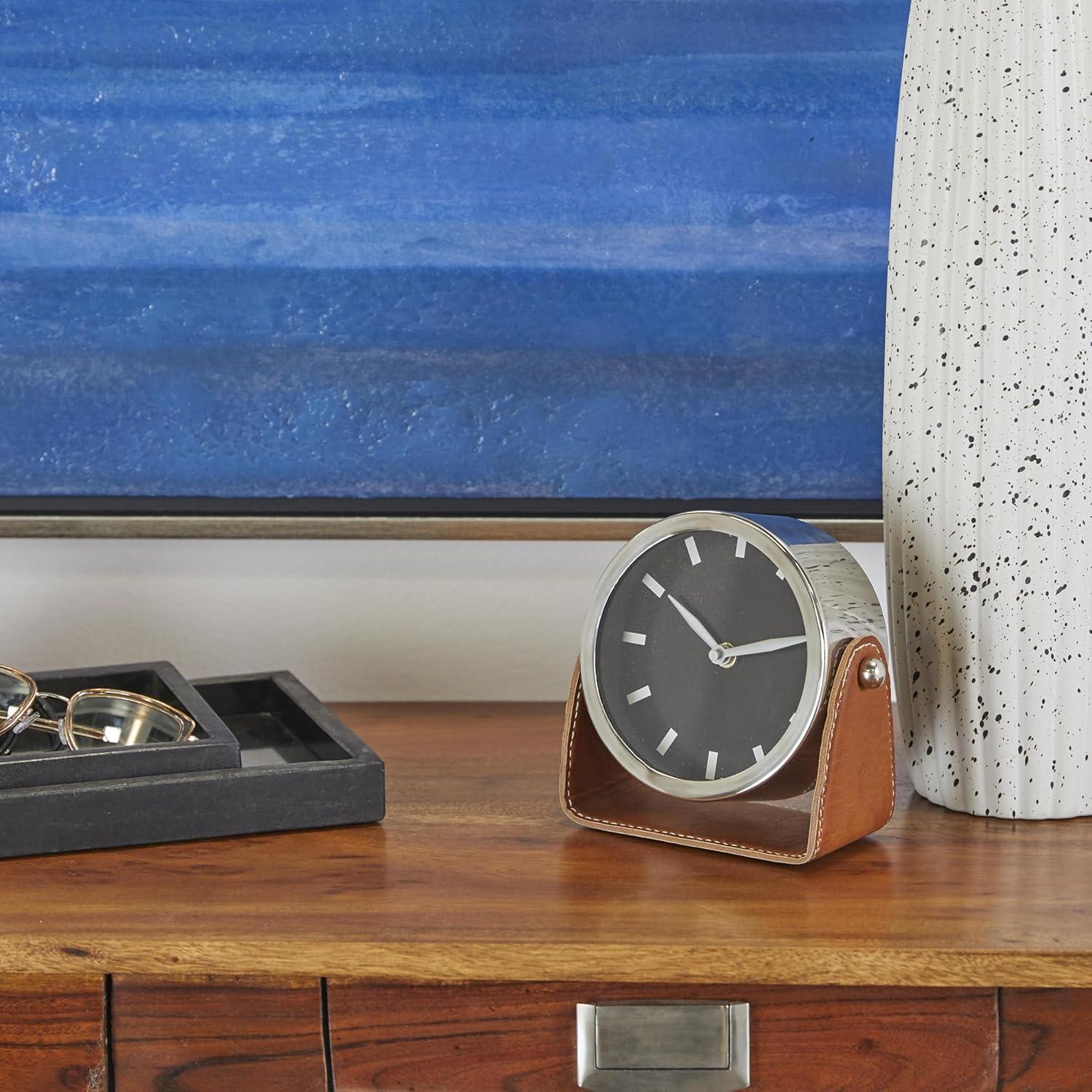 Deco 79 Stainless Steel Metal Clock with Leather Stand, 7" x 4" x 7", Gold(Silver)