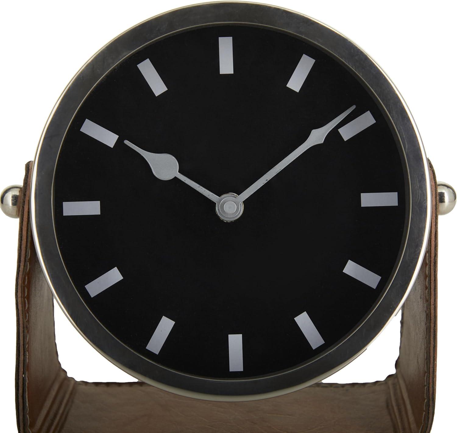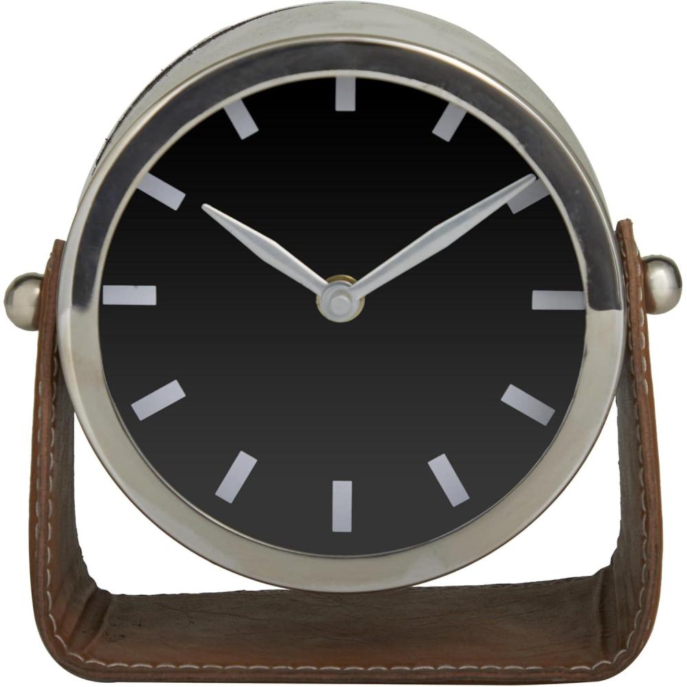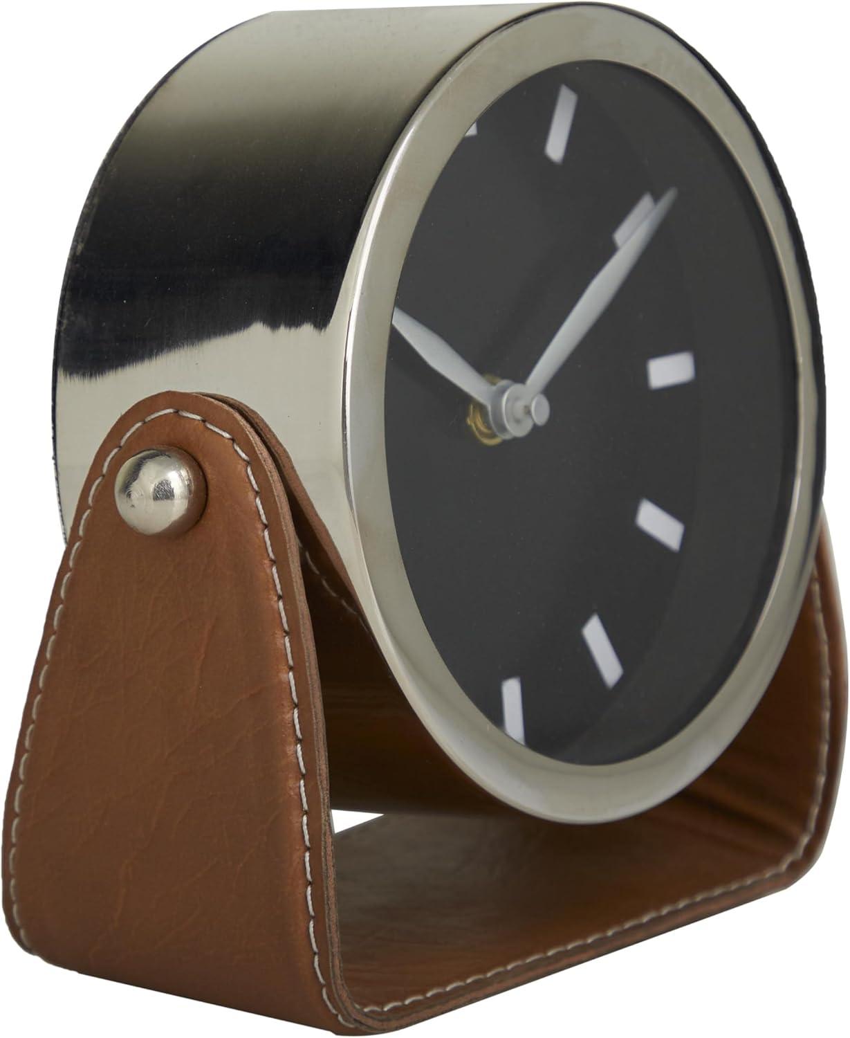 Deco 79 Stainless Steel Metal Clock with Leather Stand, 7″ x 4″ x 7″, Gold(Silver)