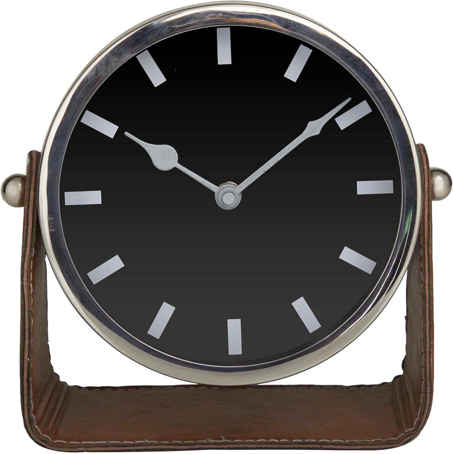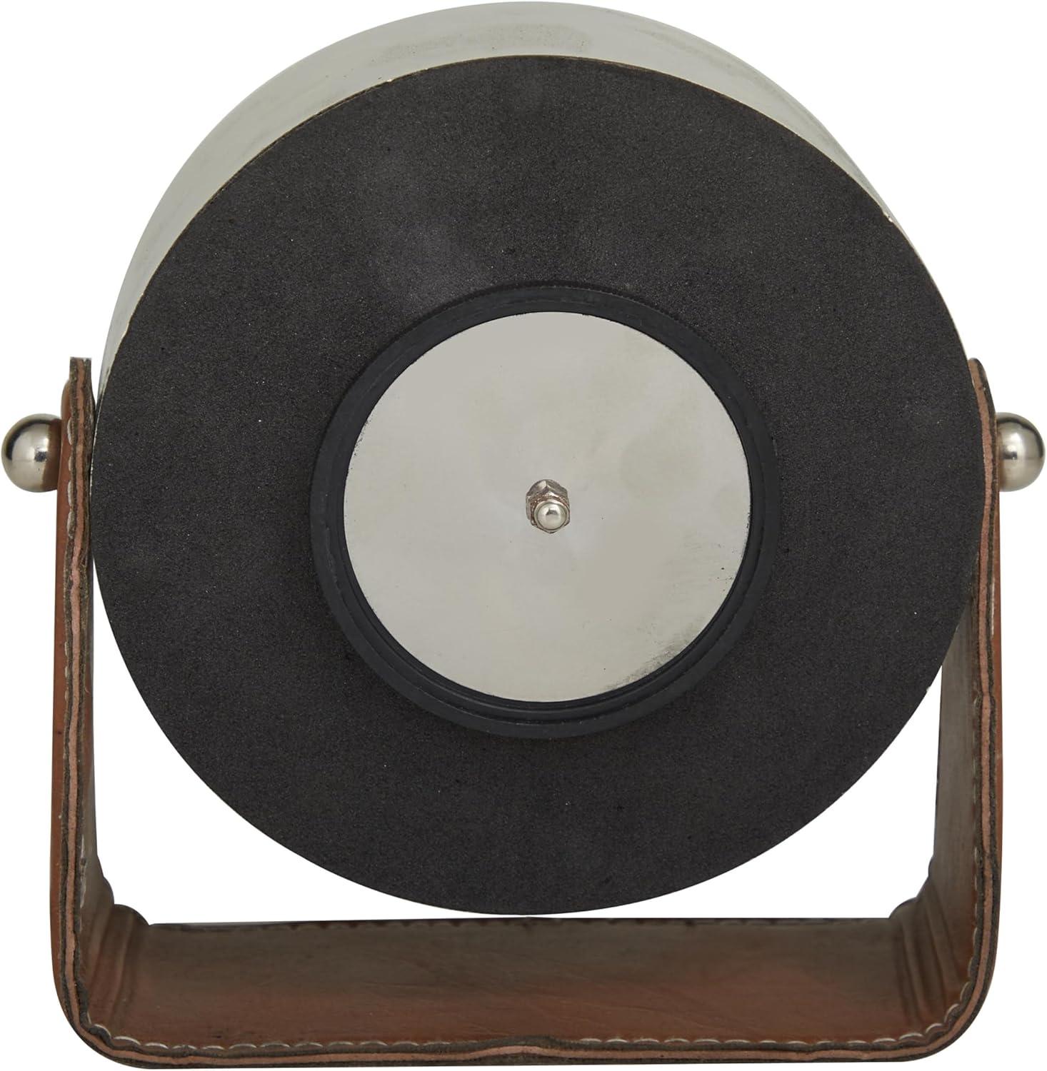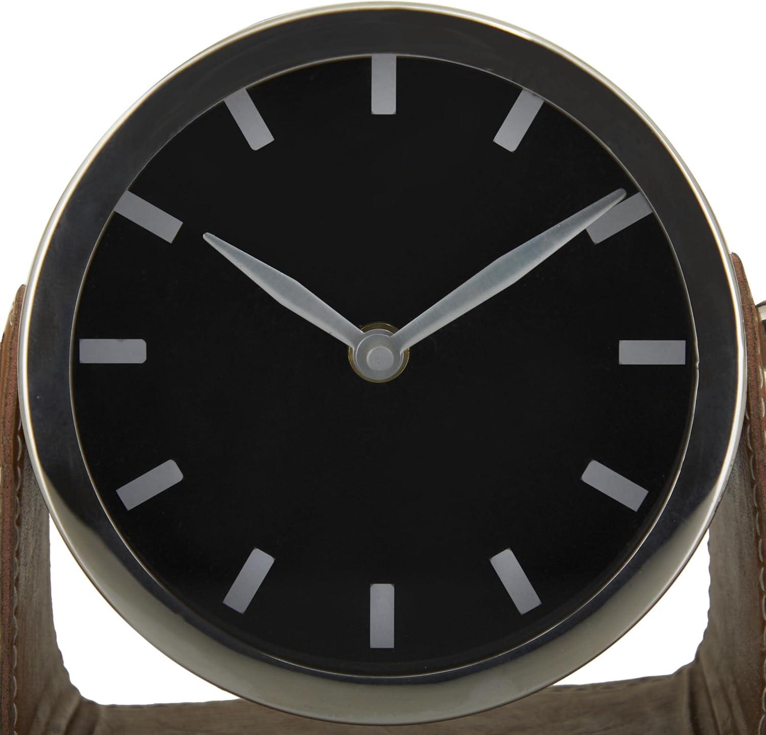 Deco 79 Stainless Steel Metal Clock with Leather Stand, 7″ x 4″ x 7″, Gold(Silver)