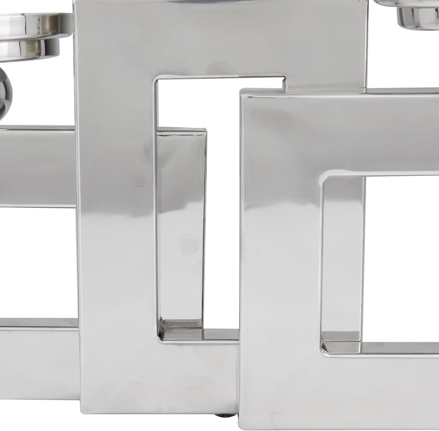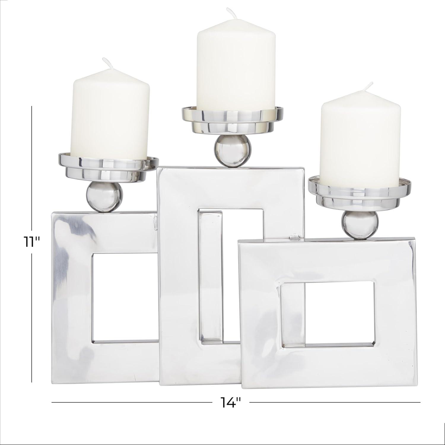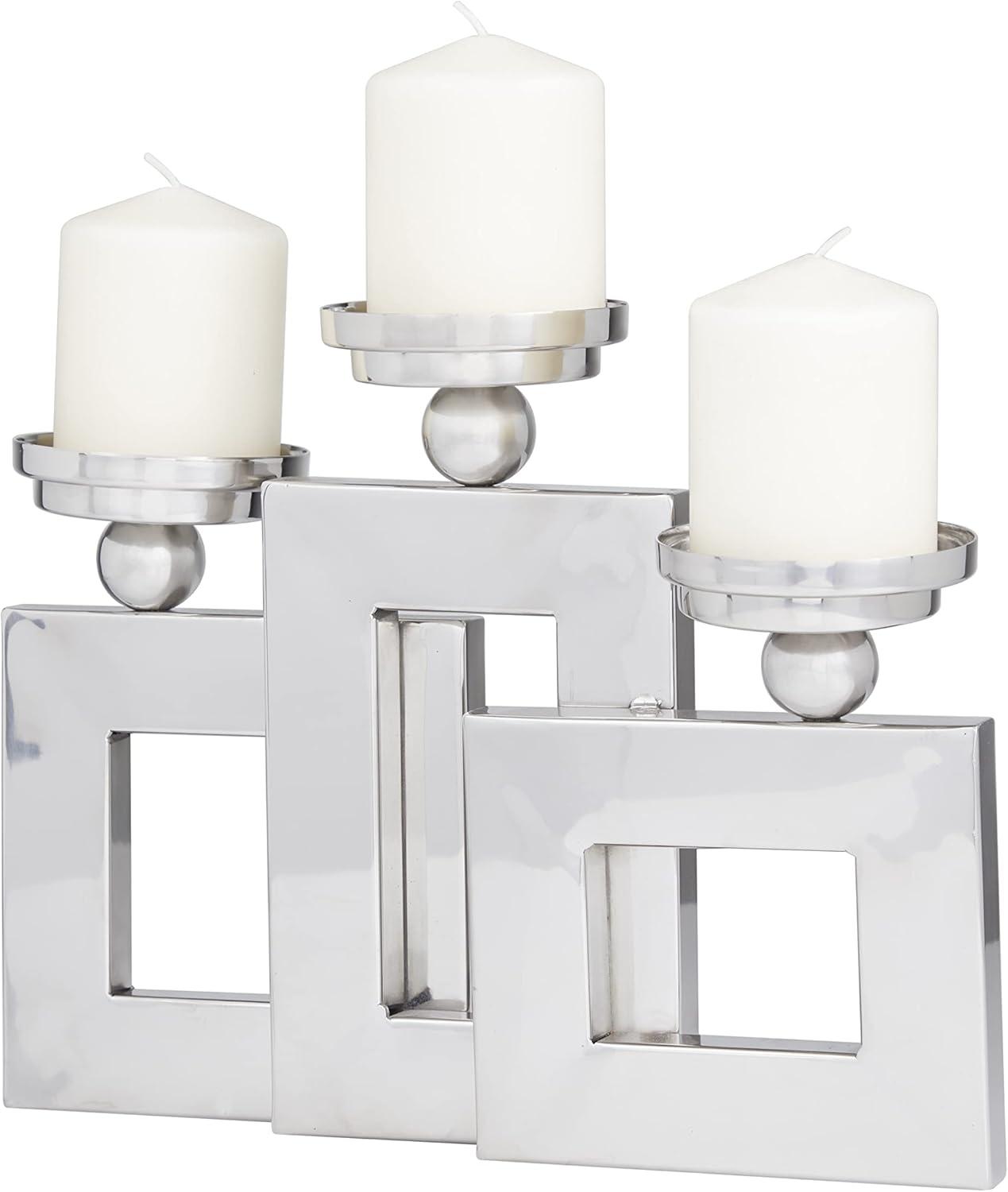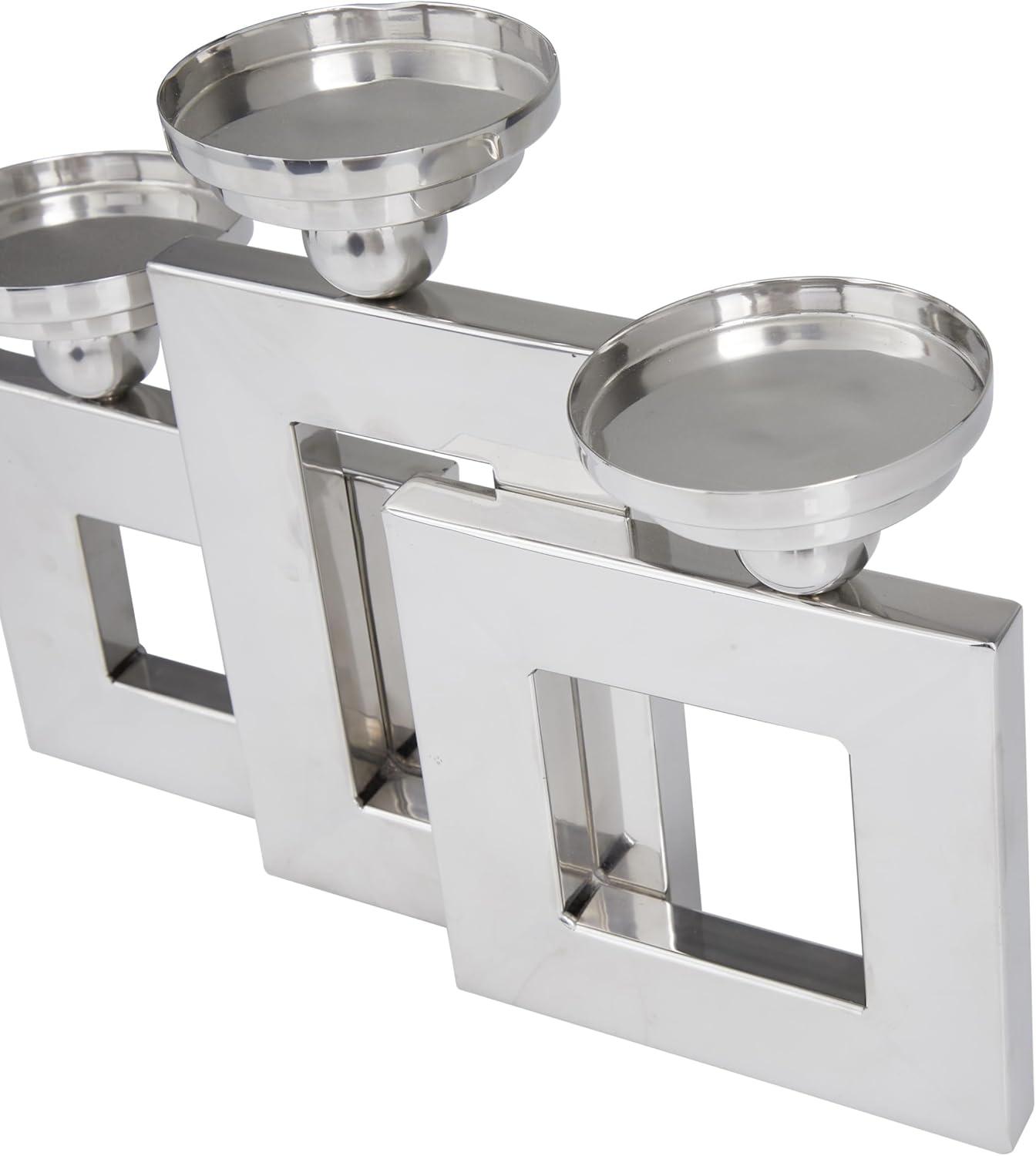 Deco 79 Stainless Steel Metal Decorative Candle Holder Pillar 3 Plate Candle Stand, Candlestick Holder 14" x 6" x 11", Silver(Silver)