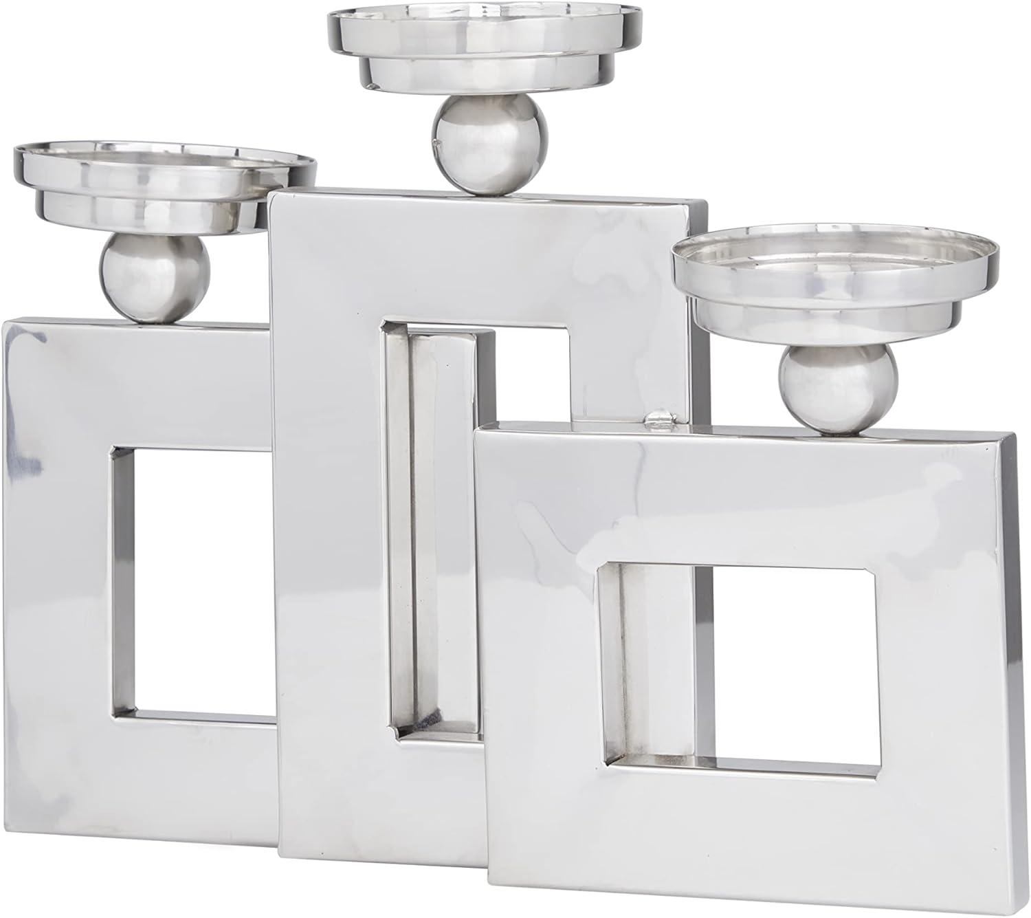Deco 79 Stainless Steel Metal Decorative Candle Holder Pillar 3 Plate Candle Stand, Candlestick Holder 14″ x 6″ x 11″, Silver(Silver)