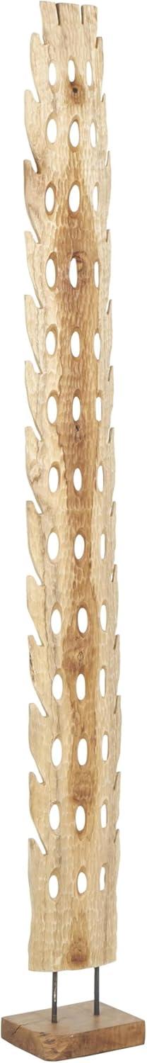 Deco 79 Teak Wood Abstract Handmade Decorative Sculpture Tall Floor Cutout Post Home Decor Statue with Live Edge Base, Accent Figurine 7" x 6" x 49", Brown(7" x 6" x 49")