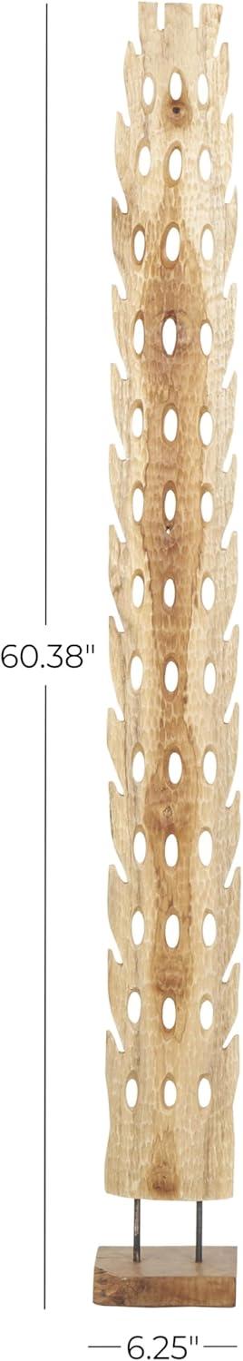 Deco 79 Teak Wood Abstract Handmade Decorative Sculpture Tall Floor Cutout Post Home Decor Statue with Live Edge Base, Accent Figurine 7″ x 6″ x 49″, Brown(7″ x 1″ x 60″)