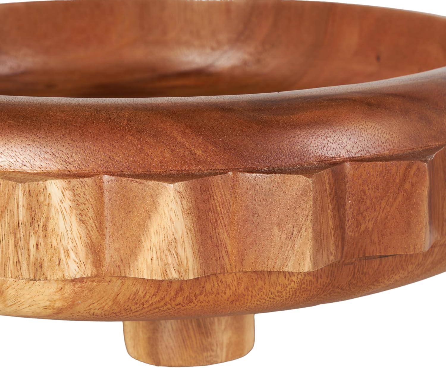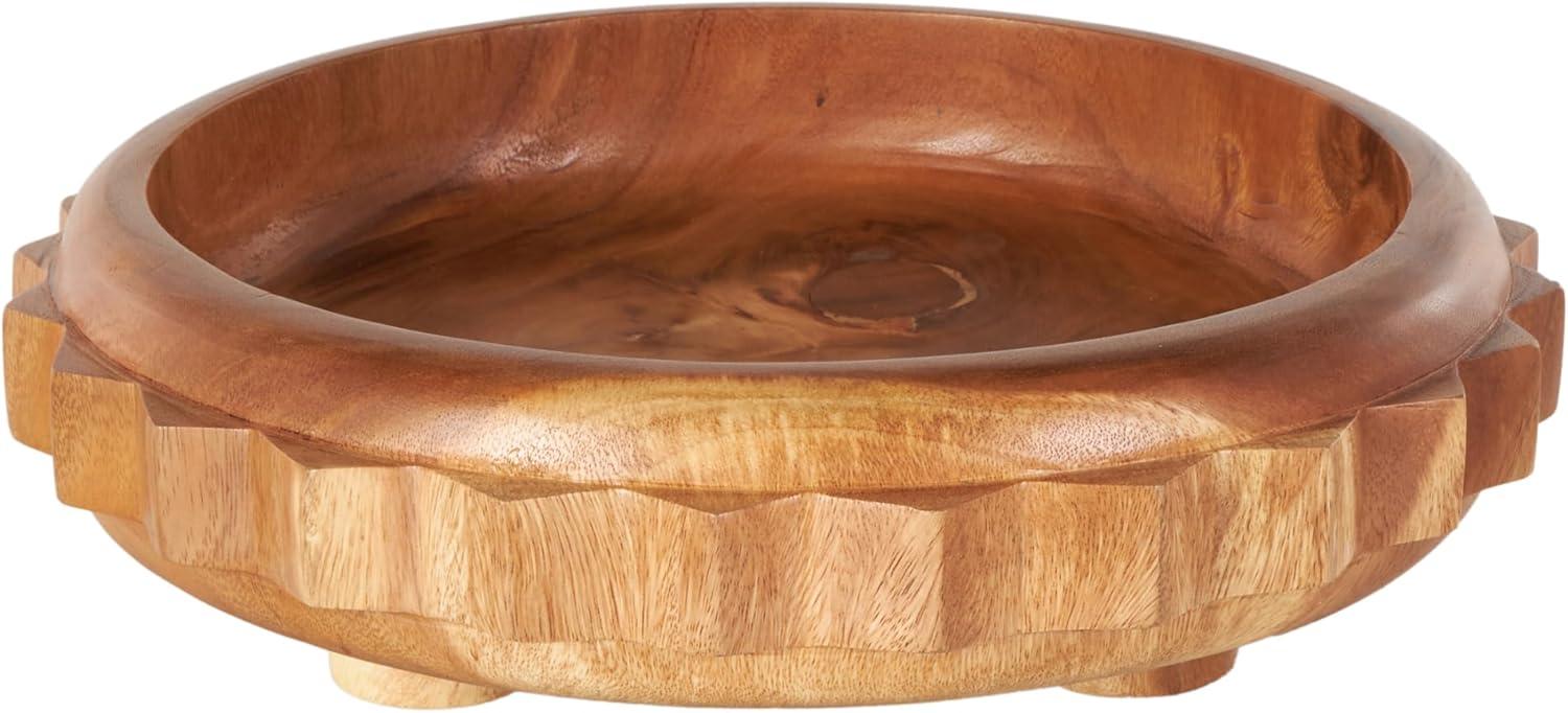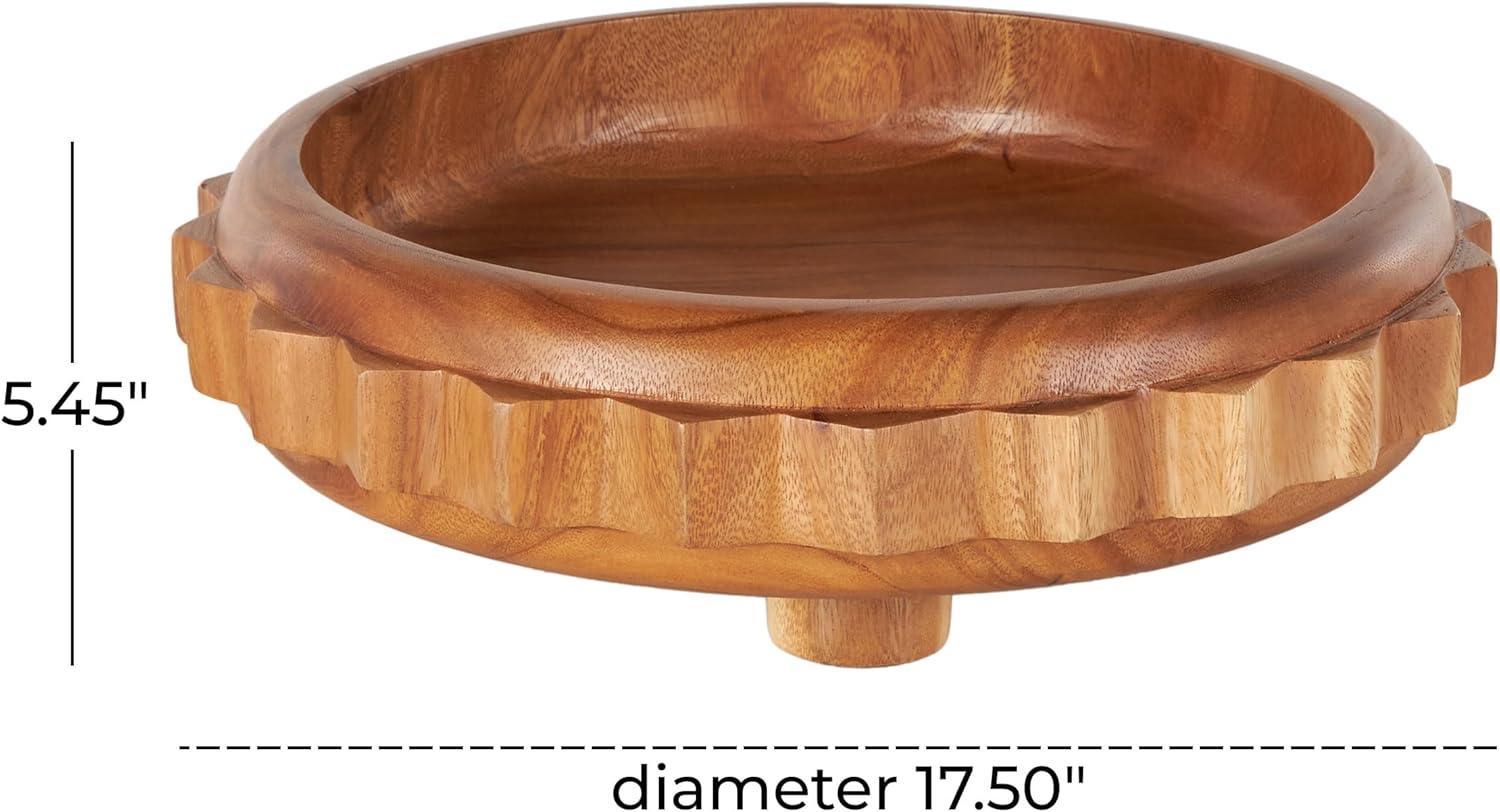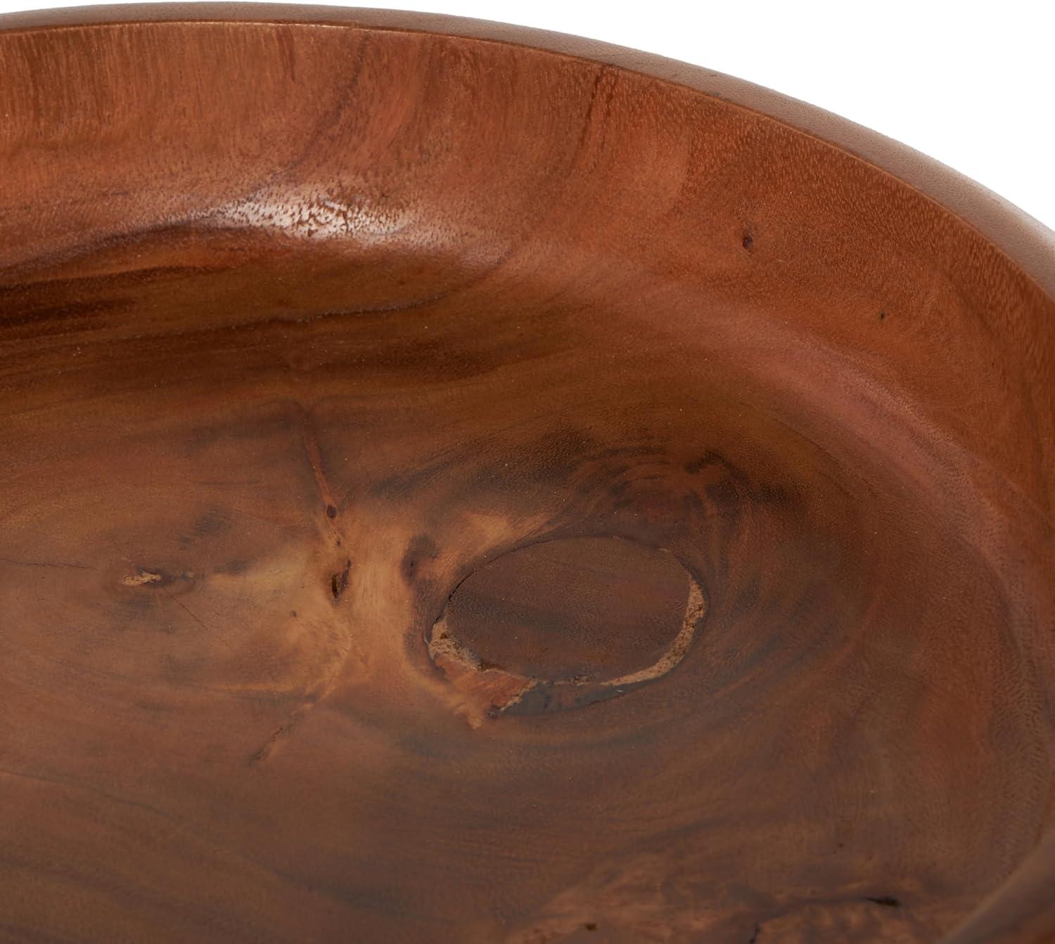 The traditional bowl showcases expert craftsmanship, with each wooden piece carefully shaped and varnished. The varnished brown decorative bowl maintains an elegant round gear shape that complements its overall design. Wipe clean with a dry cloth. The gear decorative bowl is perfect for enhancing the aesthetic of any living room. This item ships in 1 carton. Please note that this item is for decorative purposes only and is not food safe. Due to the handmade nature of this item, no two will be alike, there will be slight differences in shape, size, and color. Suitable for indoor use only. This item ships fully assembled in one piece. Due to the live edges of the piece, each is unique, so no two products will have an identical pattern, shade, or cut. Made in Indonesia. This is a single brown colored statue. Traditional style.