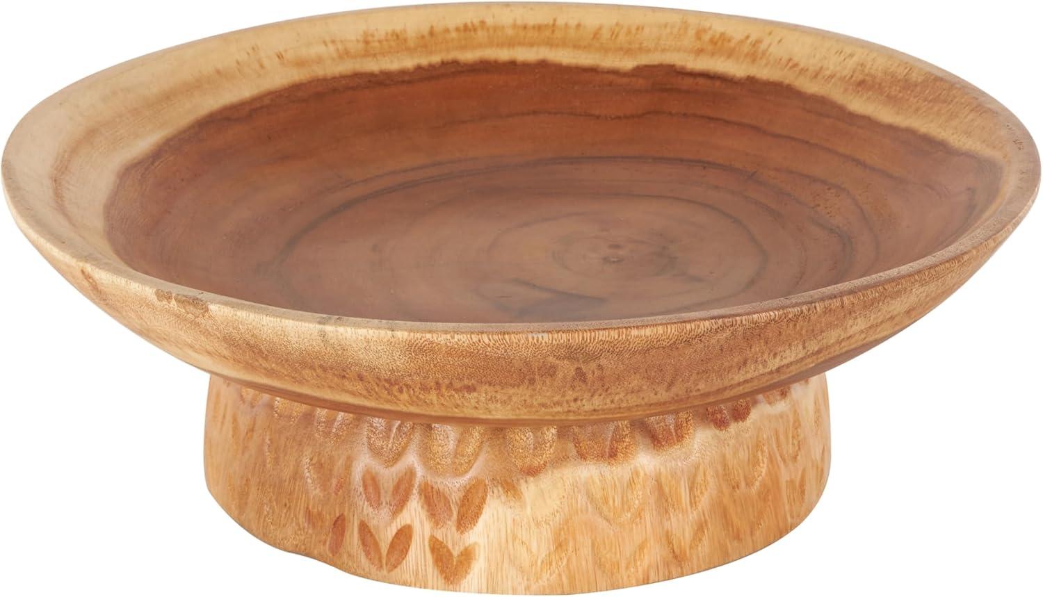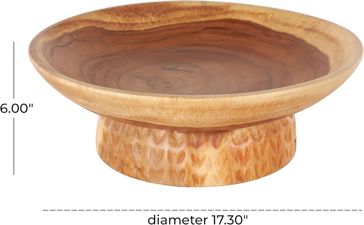 Deco 79 Teak Wood Handmade Decorative Bowl with Elevated Base, 17" x 17" x 6", Brown