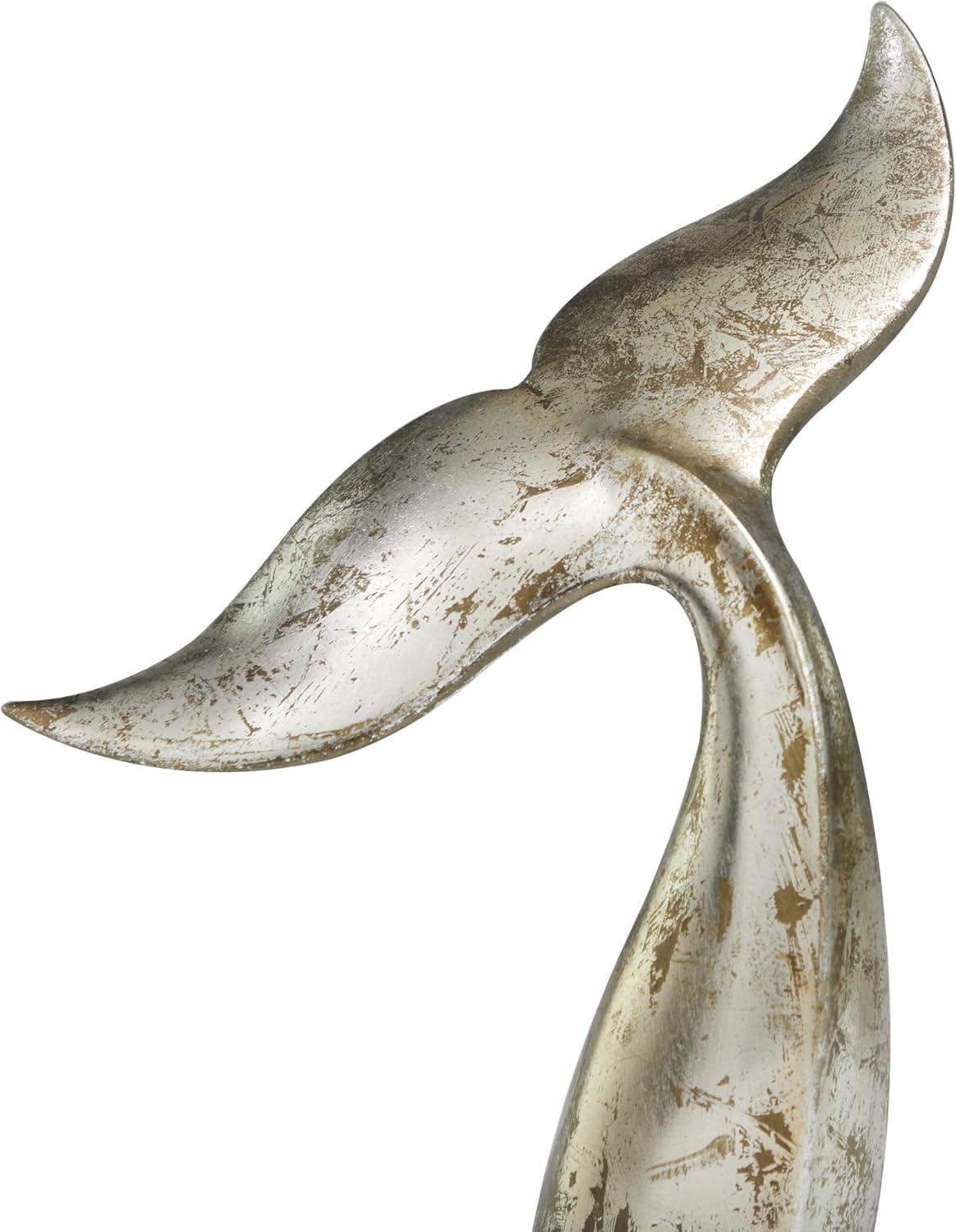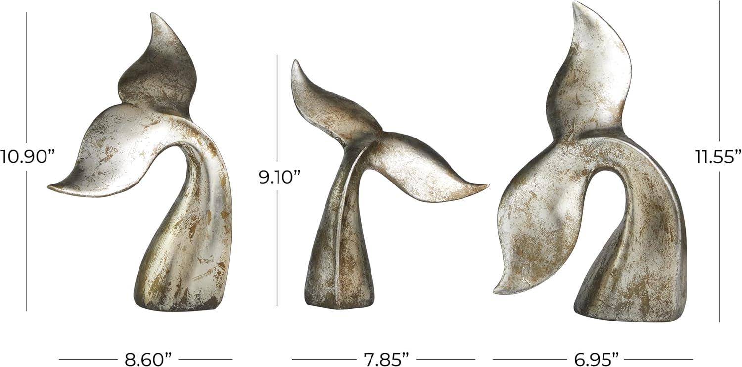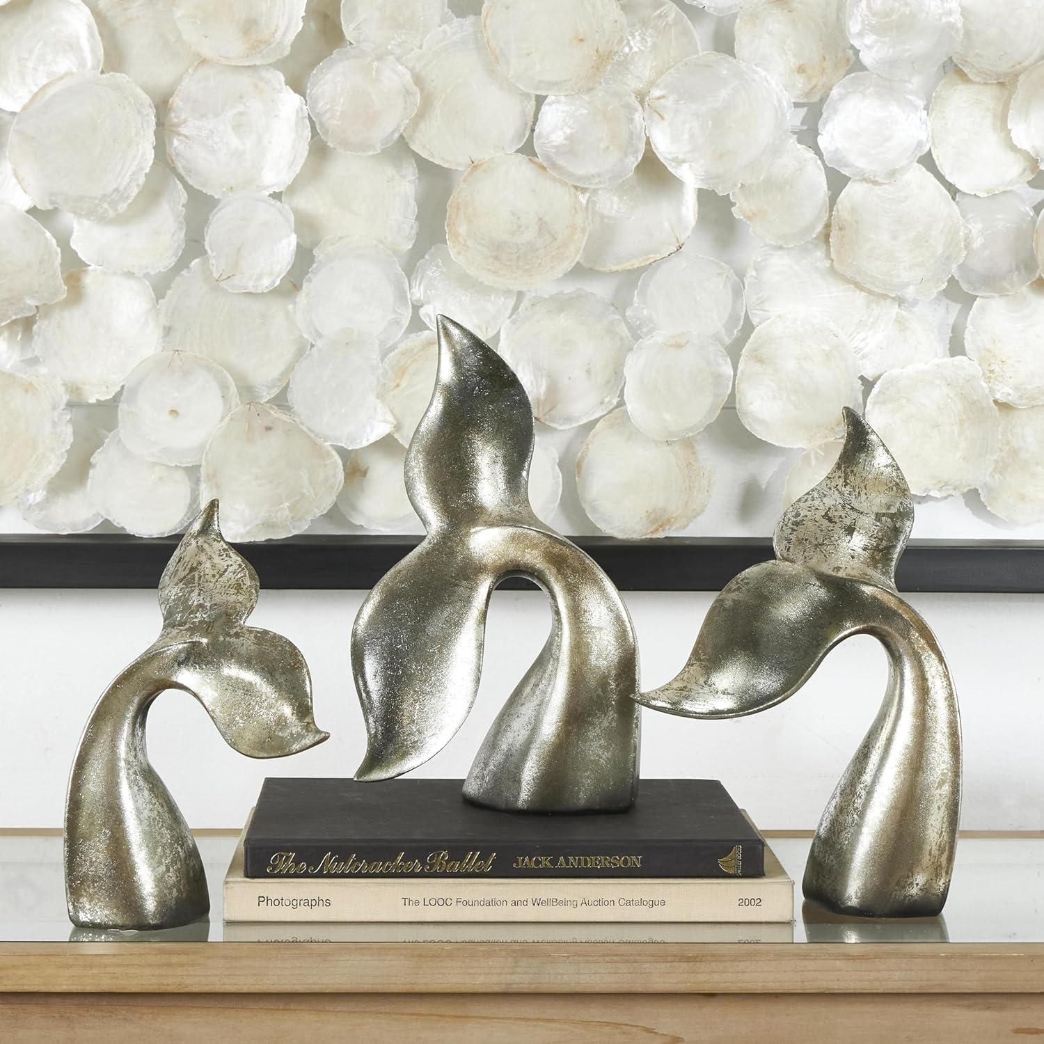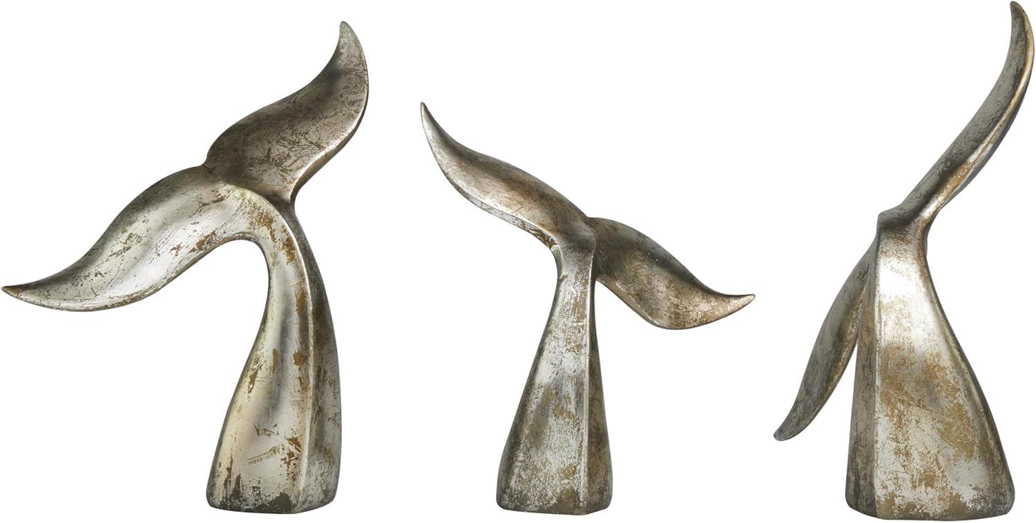 Deco 79 Teak Wood Whale Handmade Decorative Sculpture Tail Live Edge Home Decor Statues with Intricate Carvings, Set of 3 Accent Figurines 23", 18", 16"H, Brown(Silver)
