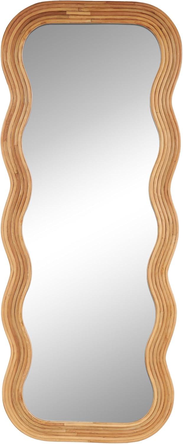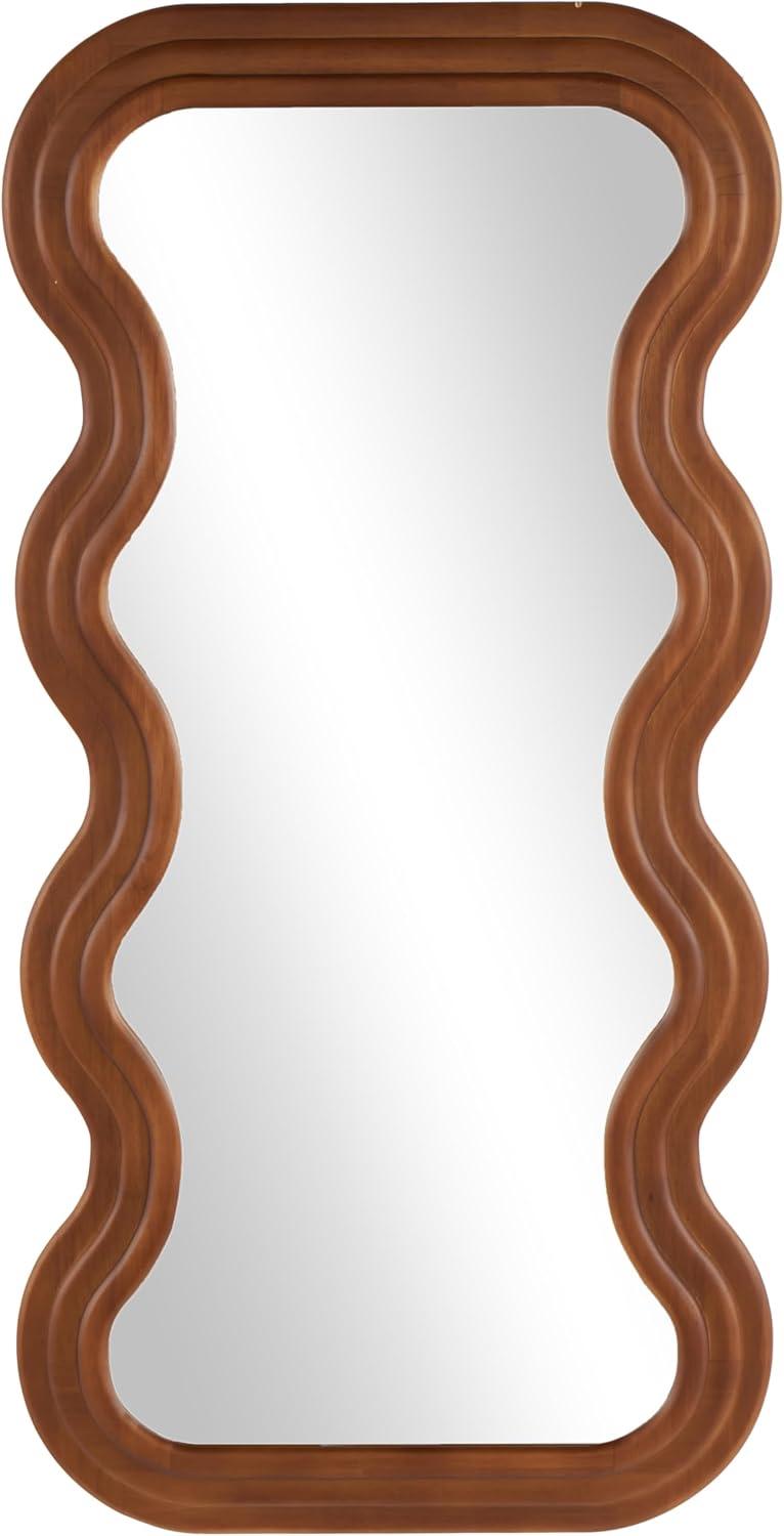 Deco 79 Velvet Room Wall Mirror Abstract Wavy Entryway Mirror with Layered Frame, Wall Mounted Mirror 24″ x 1″ x 63″, Black(Brown)