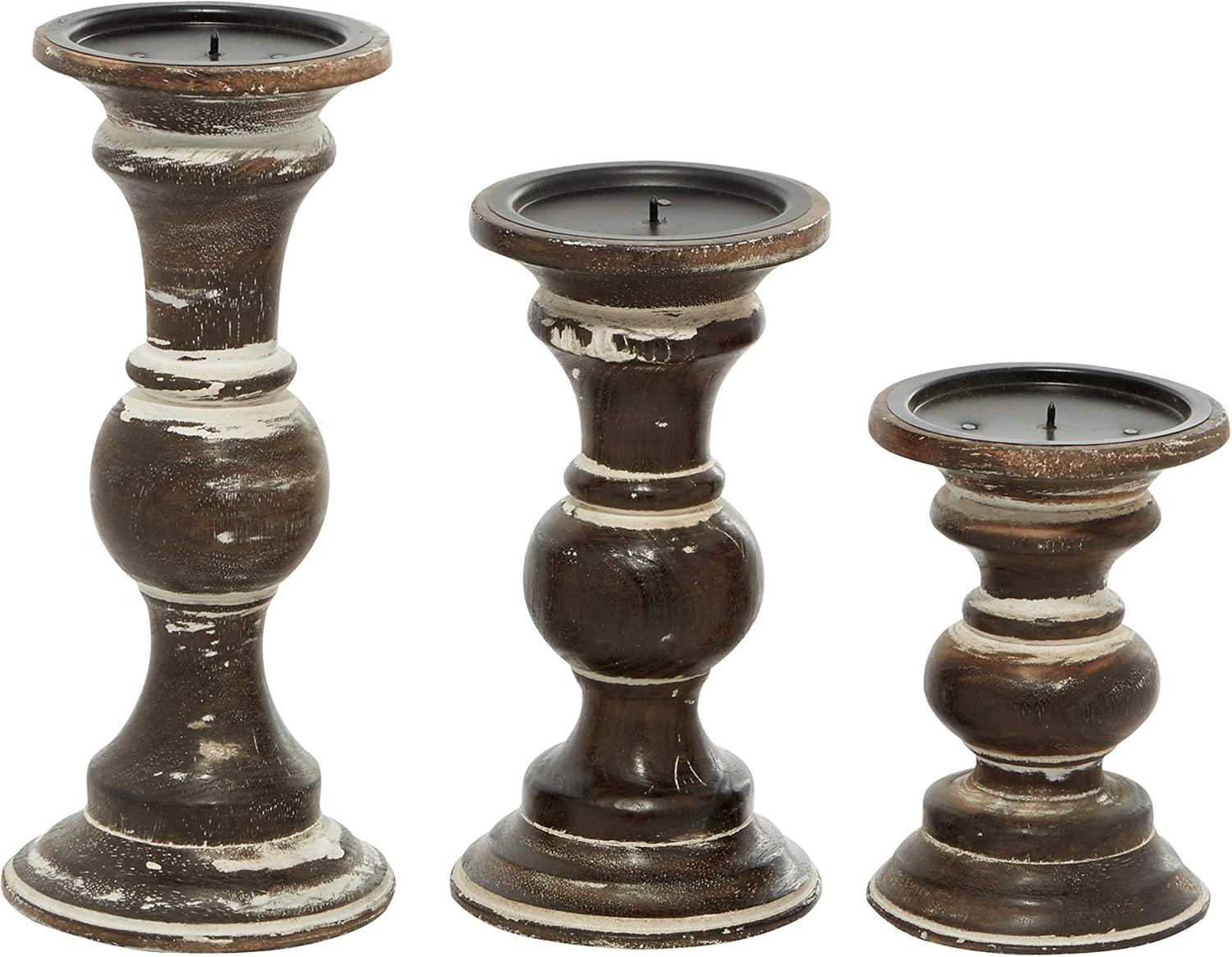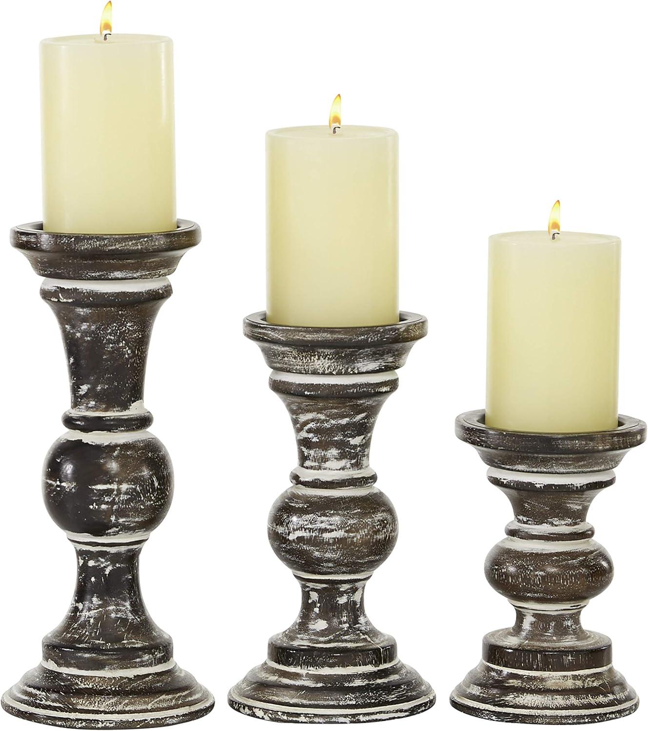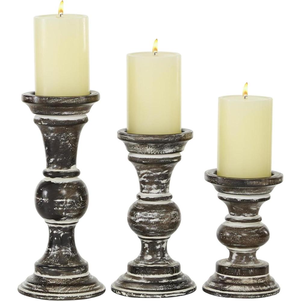 Delight your guests and make any occasion extra special by adding a lighted or flameless candle to this lantern. Give your space a radiant illumination with these beautifully crafted candle holders. This mango wood candle holder set is a great decorative piece for the living room, the study room, and the dining area. Designed with felt or rubber stoppers at the base that prevent scratching furniture and table tops, as well as sliding around. Can hold 3 pillar candles. This item ships in 1 carton. Wood candle holder makes a great gift for any occasion. Suitable for indoor use only. Made in India. This candle holder comes as a set of 3. Traditional style.