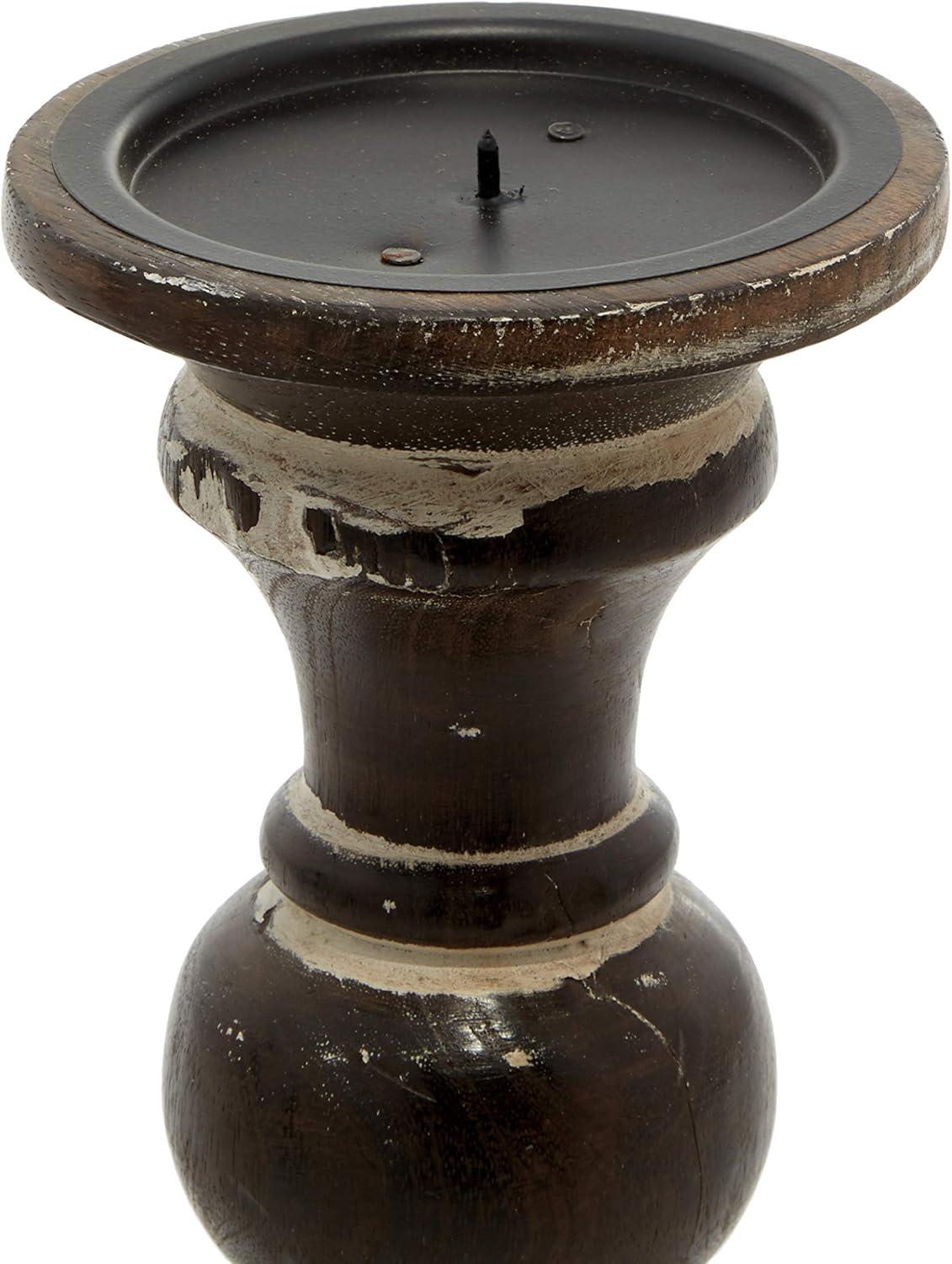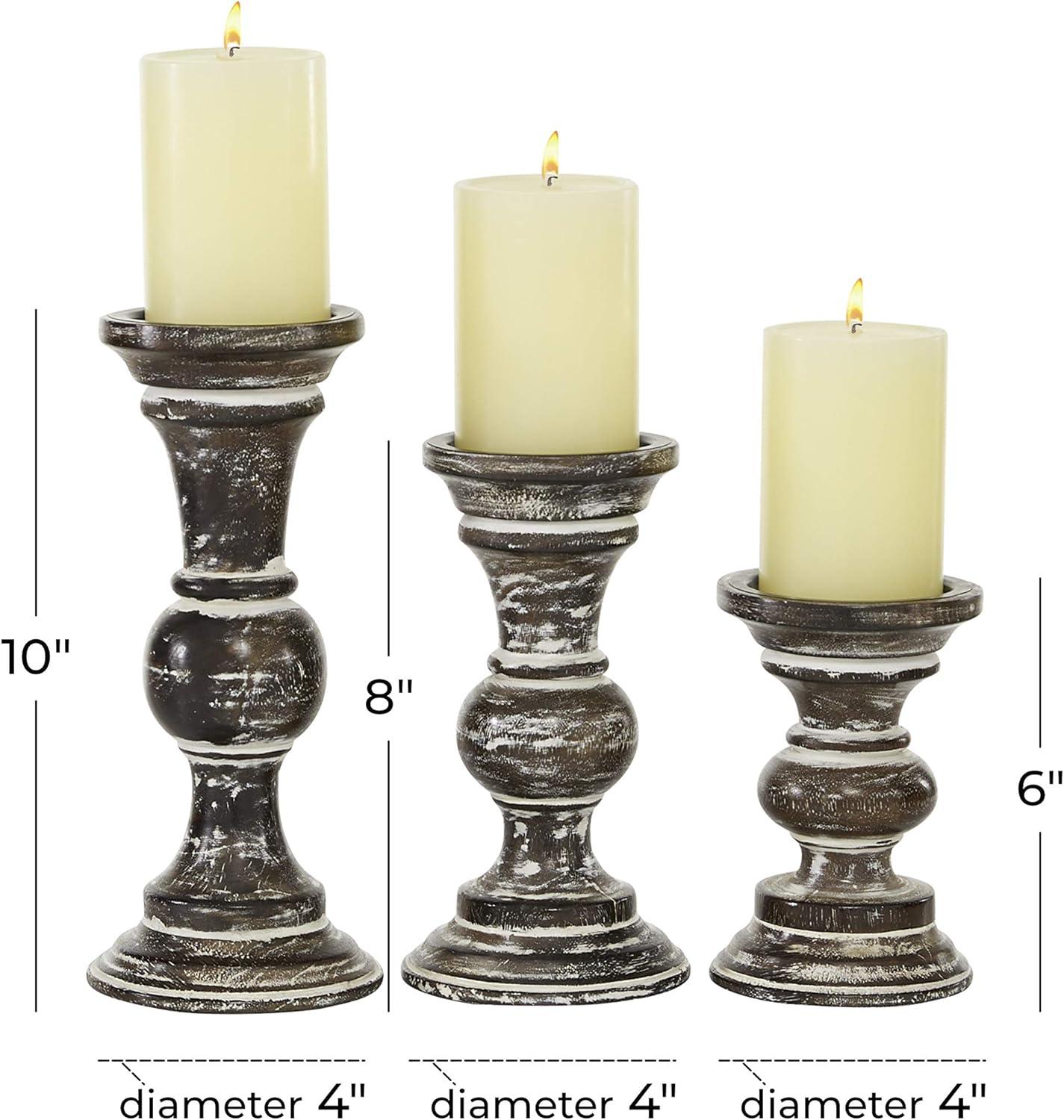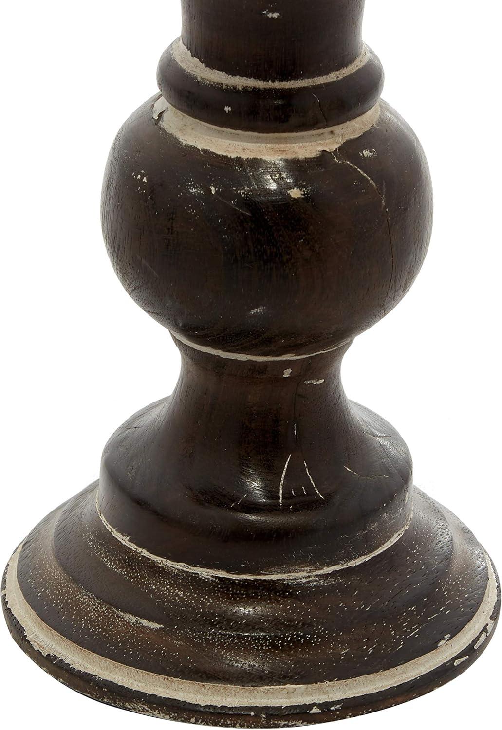 Delight your guests and make any occasion extra special by adding a lighted or flameless candle to this lantern. Give your space a radiant illumination with these beautifully crafted candle holders. This mango wood candle holder set is a great decorative piece for the living room, the study room, and the dining area. Designed with felt or rubber stoppers at the base that prevent scratching furniture and table tops, as well as sliding around. Can hold 3 pillar candles. This item ships in 1 carton. Wood candle holder makes a great gift for any occasion. Suitable for indoor use only. Made in India. This candle holder comes as a set of 3. Traditional style.
