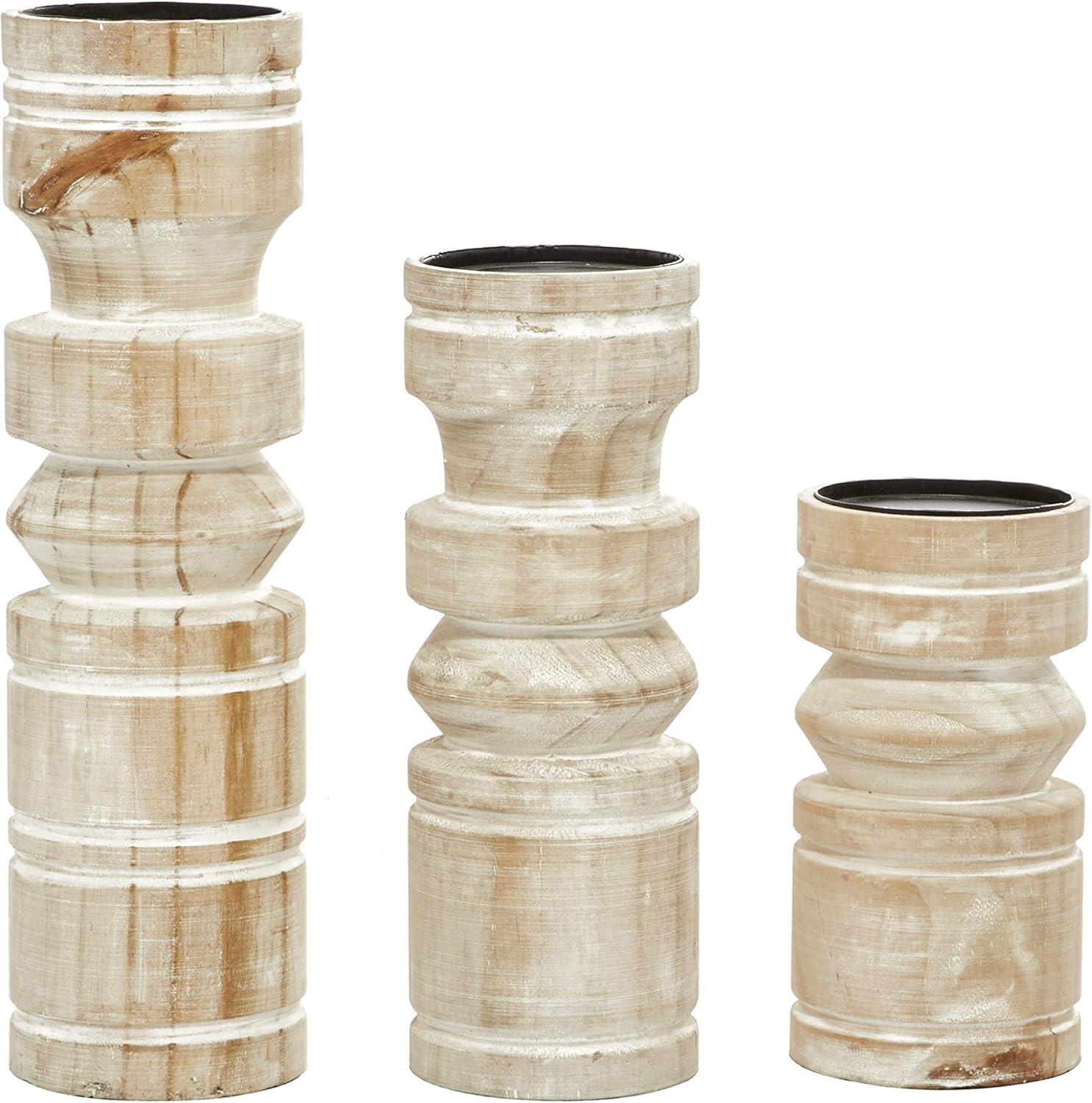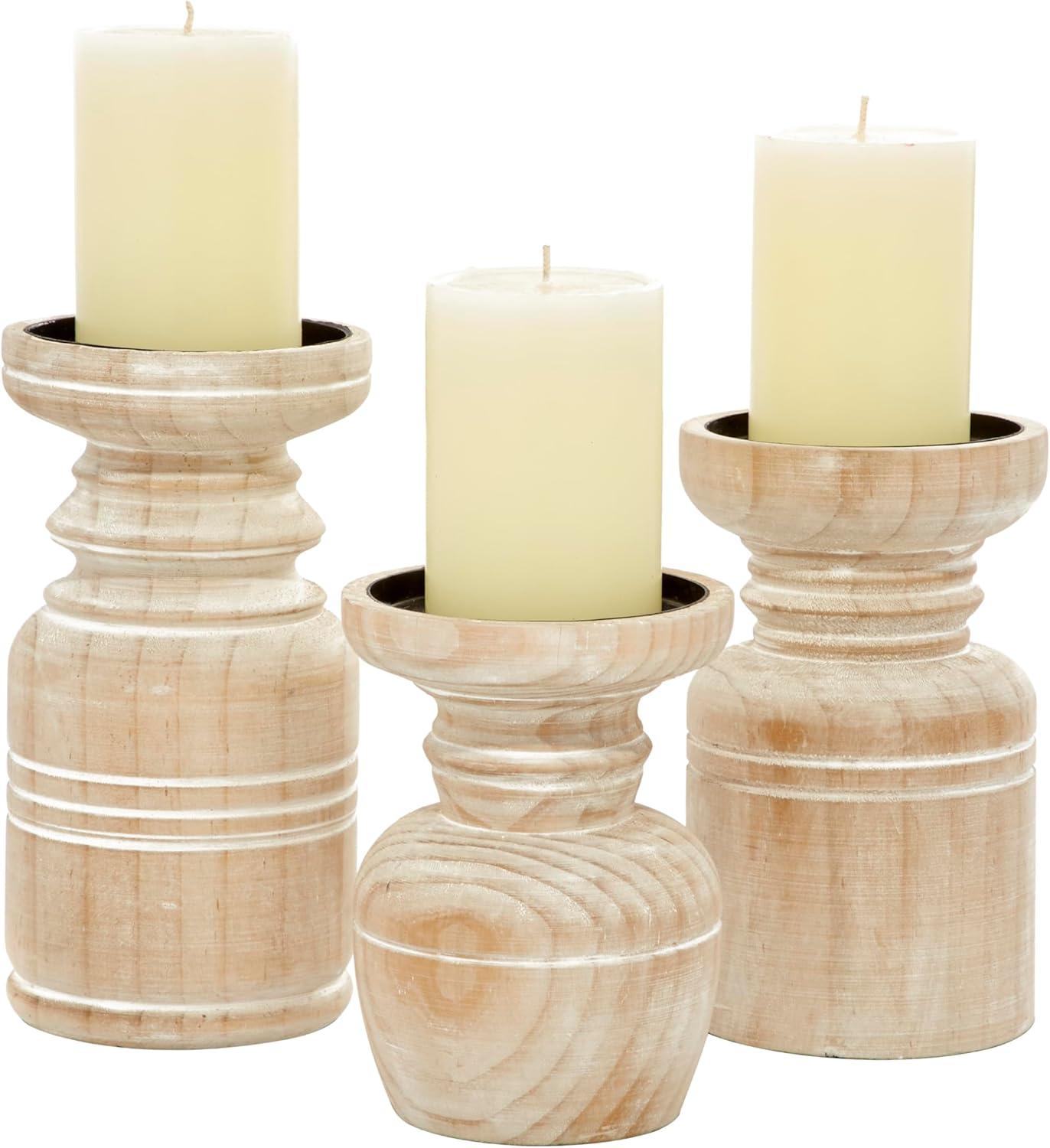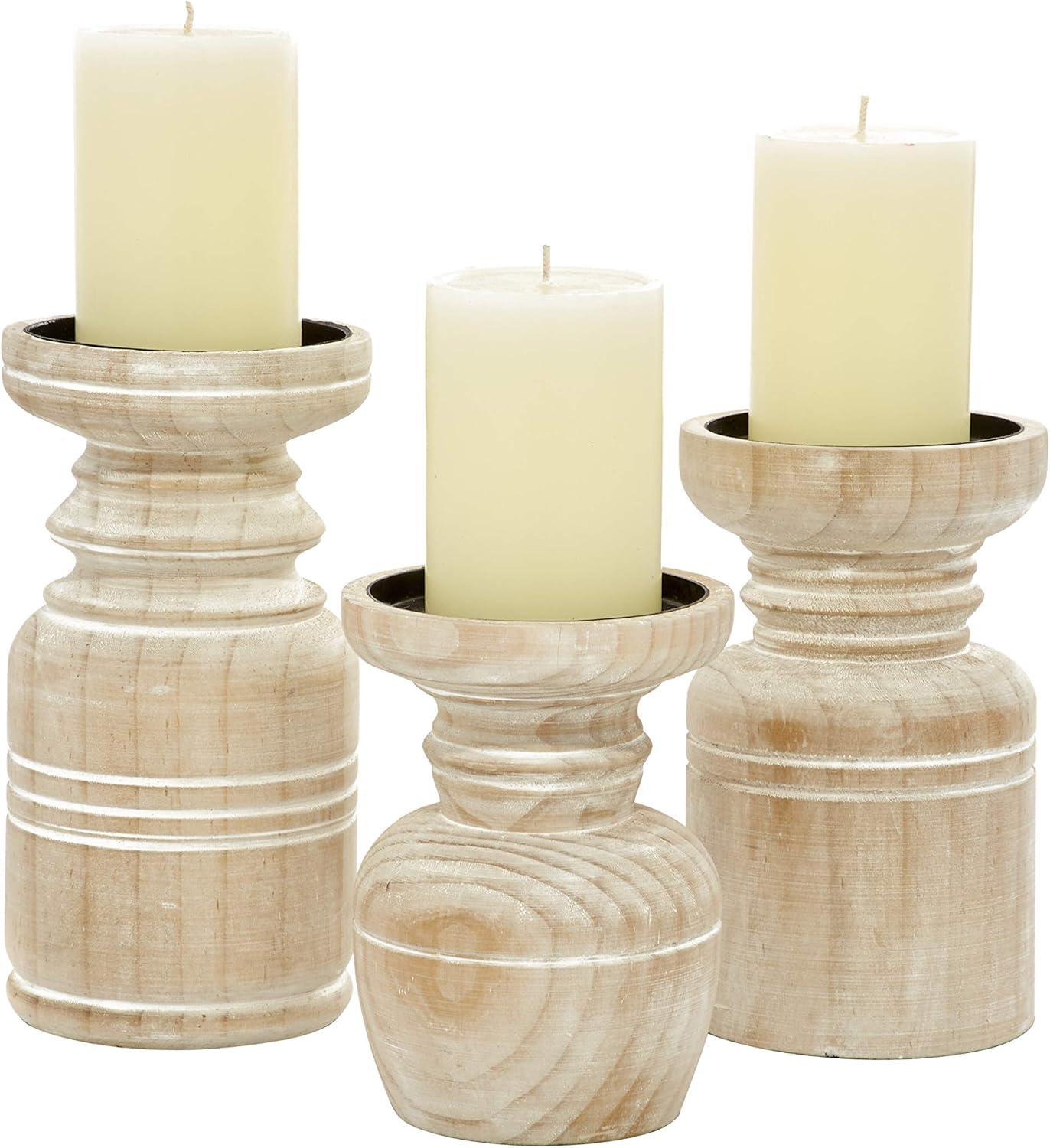 Traditional set of 3 candle holders for home decor showcases intricately carved wood with a distressed black coating on its tapered bodies and iron welded plates attached to hold candles securely. Distressed black candle holders for centerpiece displays turned wood-inspired design with horizontal ribbing. Wipe clean with a dry cloth. Give your space a radiant illumination with these beautifully crafted candle holders. Made with a sturdy base, it is perfect for creating an elegant atmosphere at your table top or mantel. Black set of 3 candle stands provides a great display in your home for a warm and comforting atmosphere in living rooms or bedrooms. Designed with felt or rubber stoppers at the base that prevent scratching furniture and table tops, as well as sliding around. Can hold 3 pillar candles, not included. This item ships in 1 carton. Wood candle holder makes a great gift for any occasion. Suitable for indoor use only. This item ships fully assembled in one piece. This black colored wood candle stand comes as a set of 3. Traditional style.