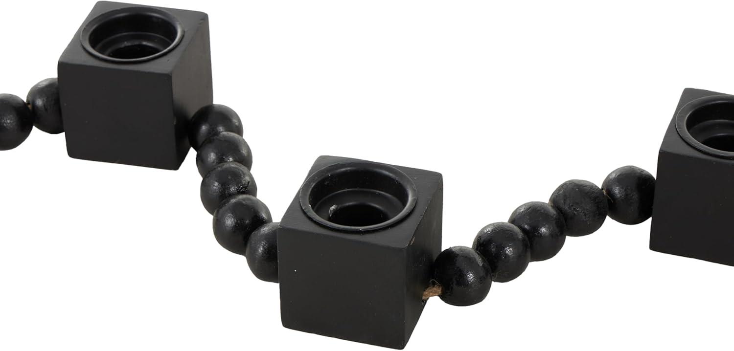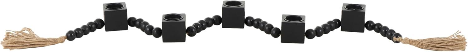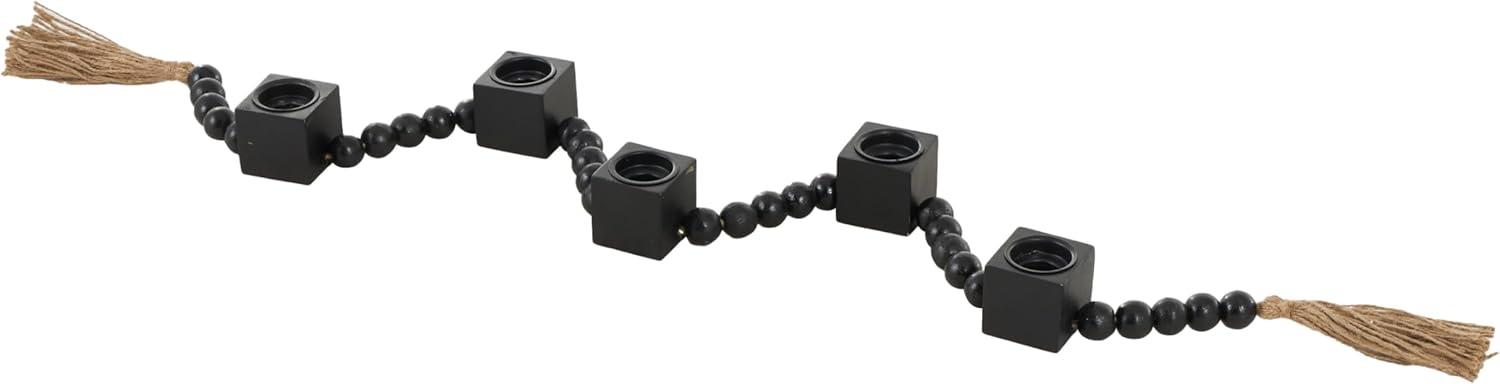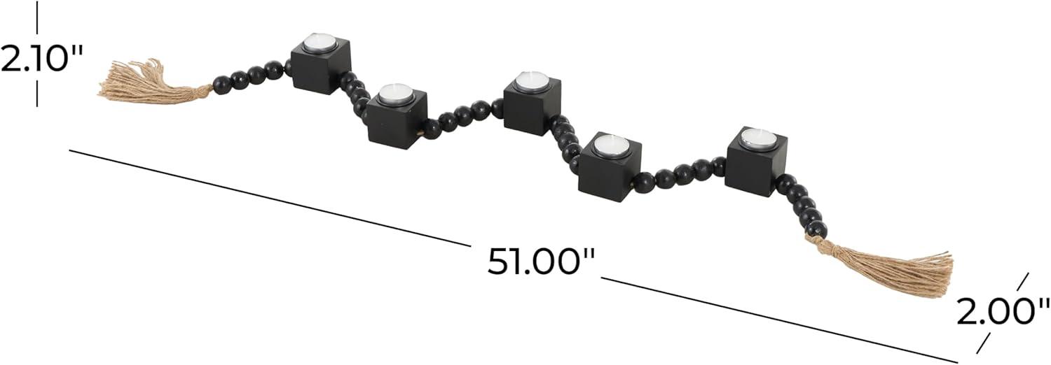 Deco 79 Wood Decorative Candle Holder Garland Candle Stand with Brown Tassel, Candlestick Holder 51″ x 2″ x 2″, Black