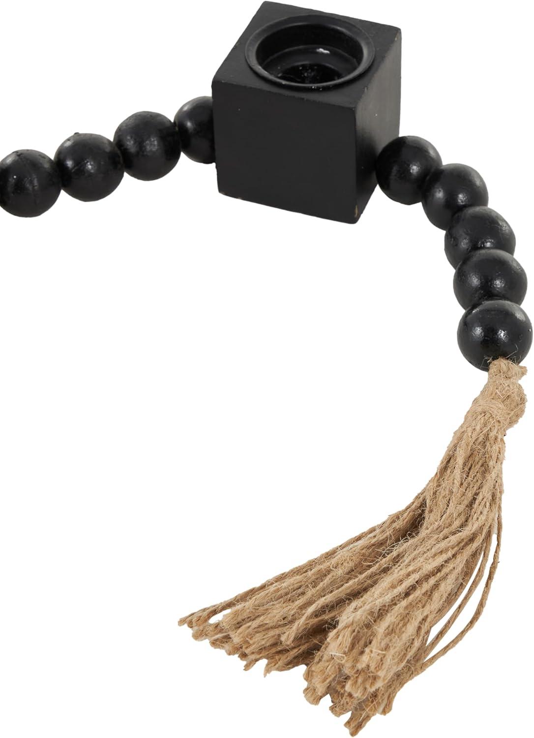 image:imageDeco 79 Wood Decorative Candle Holder Garland Candle Stand with Brown Tassel Candlestick Holder 51 x 2 x 2 Black