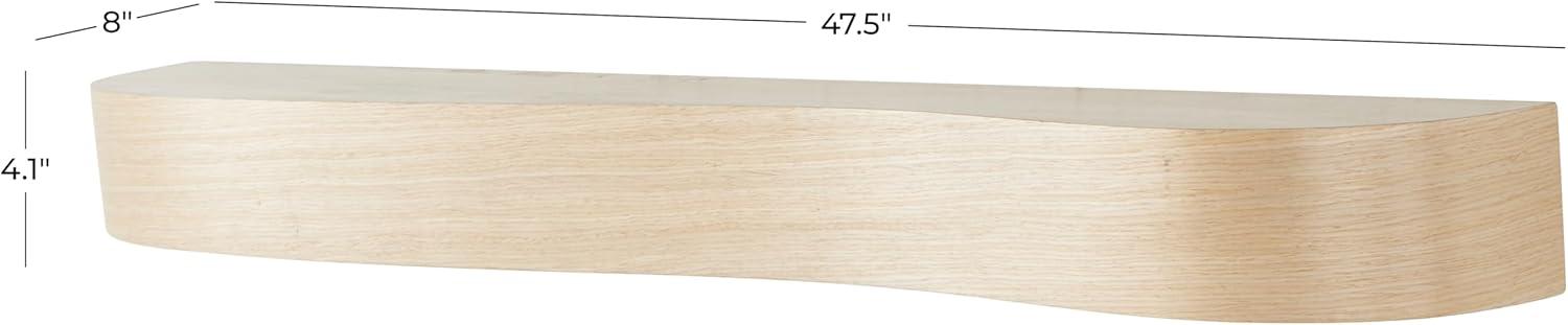 Each piece in the traditional set of 3 shelves is handmade with carved wood applied with an oiled brown finish, ensuring durability and elegance. The oiled brown wall shelves have a wavy rectangular shape with a wood grain pattern that complements various home decor styles. Wipe clean with a dry cloth. Perfect for living rooms, bedrooms, or offices, the black set of 3 wall shelves offers both functionality and aesthetic appeal. This item ships in 1 carton. Due to the handmade nature of this item, no two will be alike, there will be slight differences in shape, size, and color. Can be hung horizontally using the keyholes; nails and screws not included. Suitable for indoor use only. This item ships fully assembled in one piece. Maximum weight limit is 20 lbs. This brown colored wood floating shelf comes as a set of 3. Wood wall shelf features 3 shelves. Traditional style.