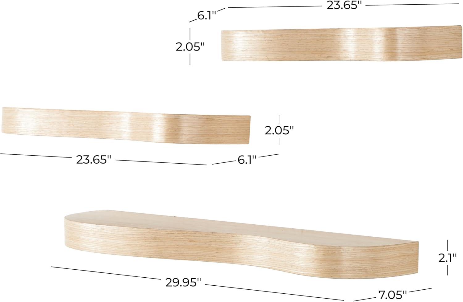 Deco 79 Wood Handmade Room Wall Shelf Floating Shelves with Various Sizes, Set of 3 Display Shelves 24′, 20′, 16’W, Brown(Light Brown)