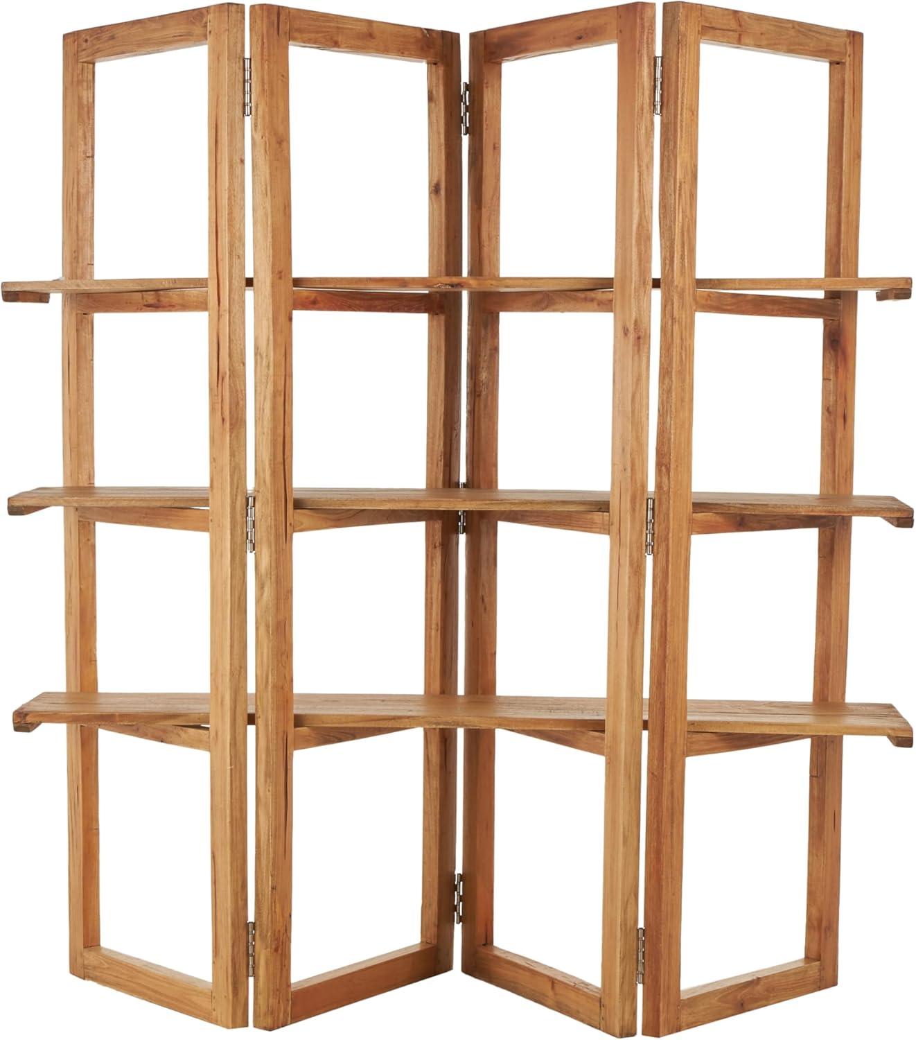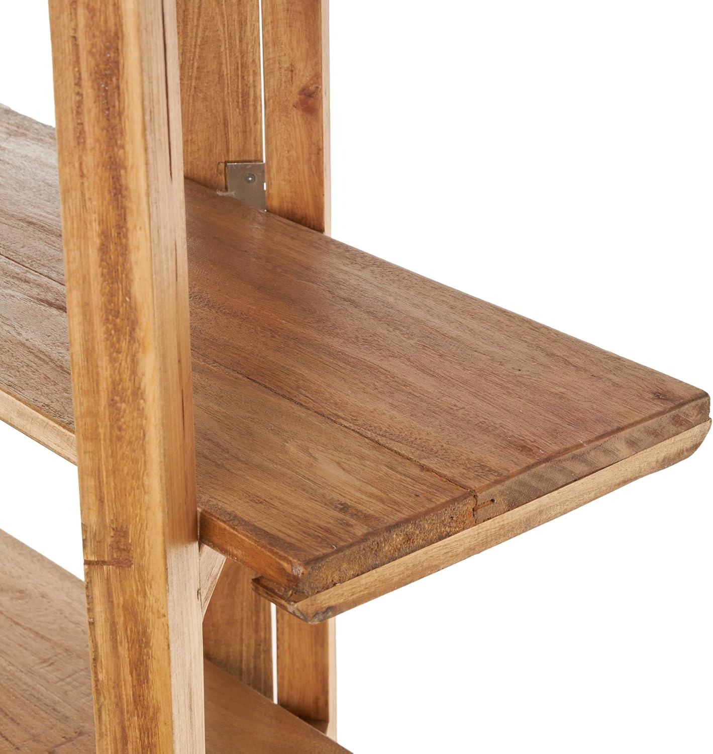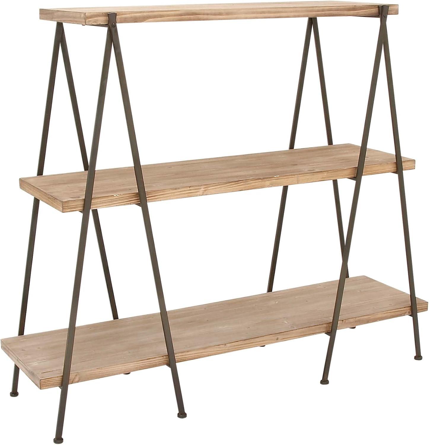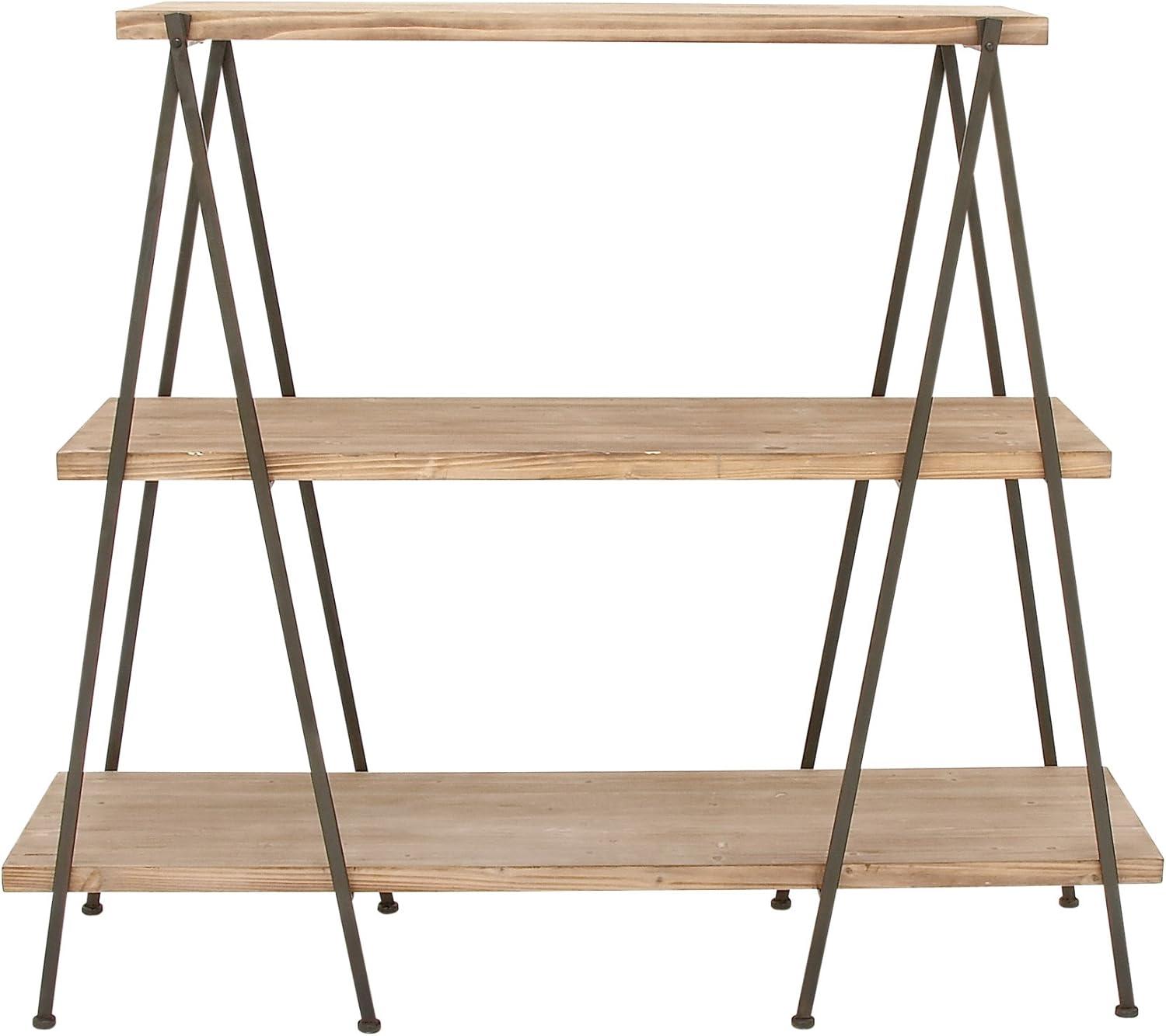Deco 79 Wood Handmade Storage Shelving Unit Folding 3 Shelf Shelving Unit with Silver Metal Hardware, Display Shelf 63" x 22" x 71", Brown(Brown)
