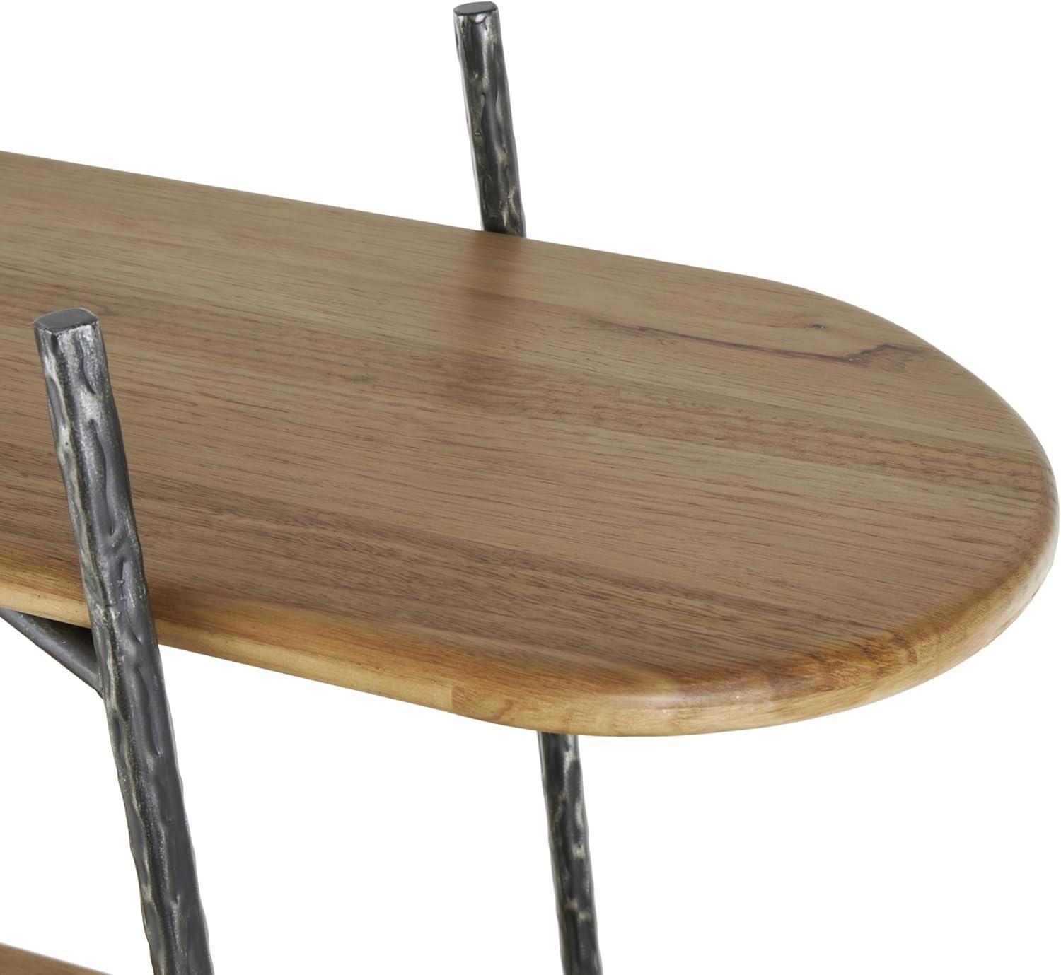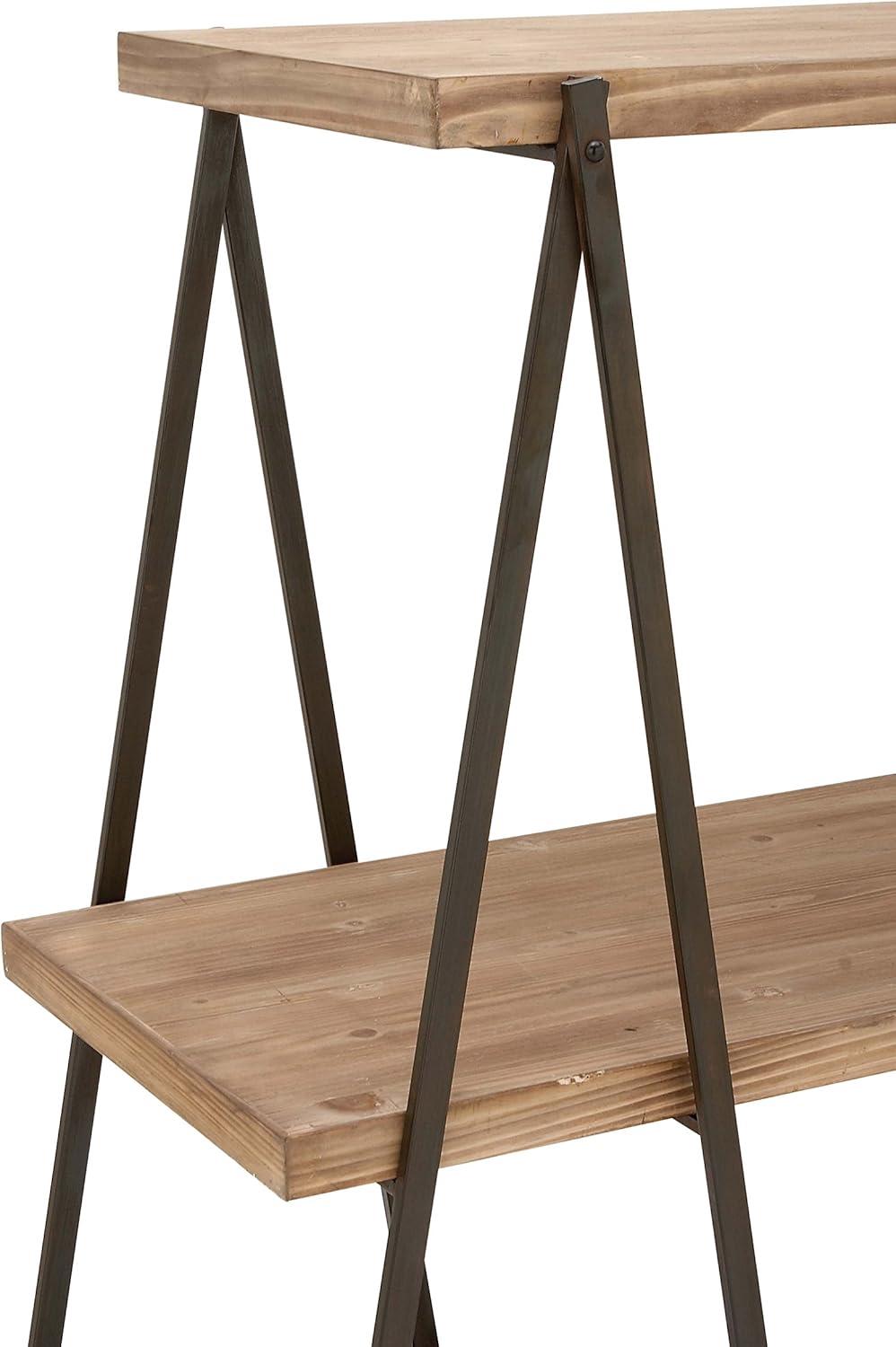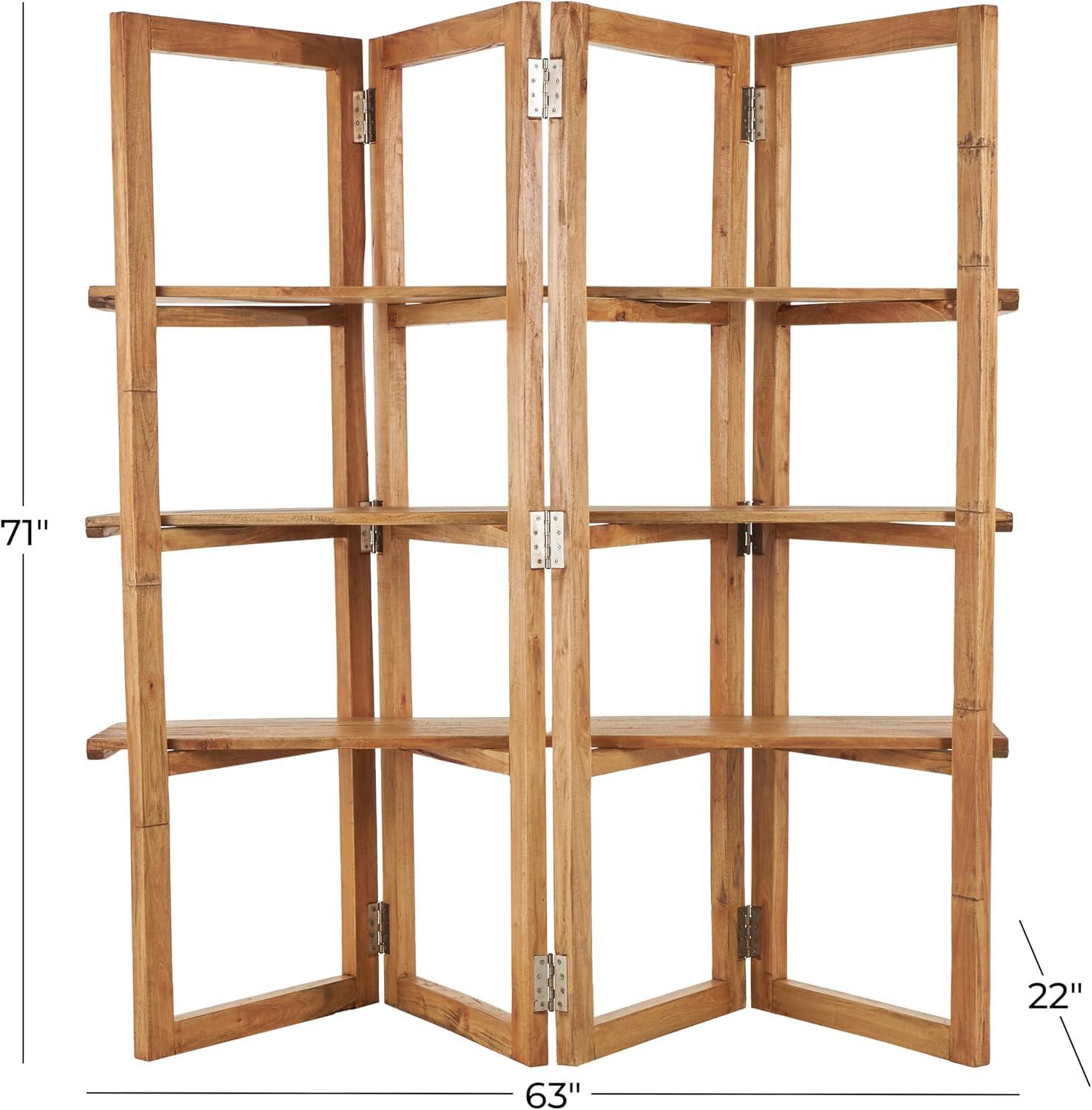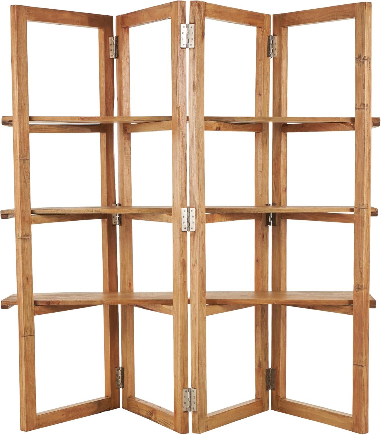 Deco 79 Wood Handmade Storage Shelving Unit Folding 3 Shelf Shelving Unit with Silver Metal Hardware, Display Shelf 63" x 22" x 71", Brown(Brown)
