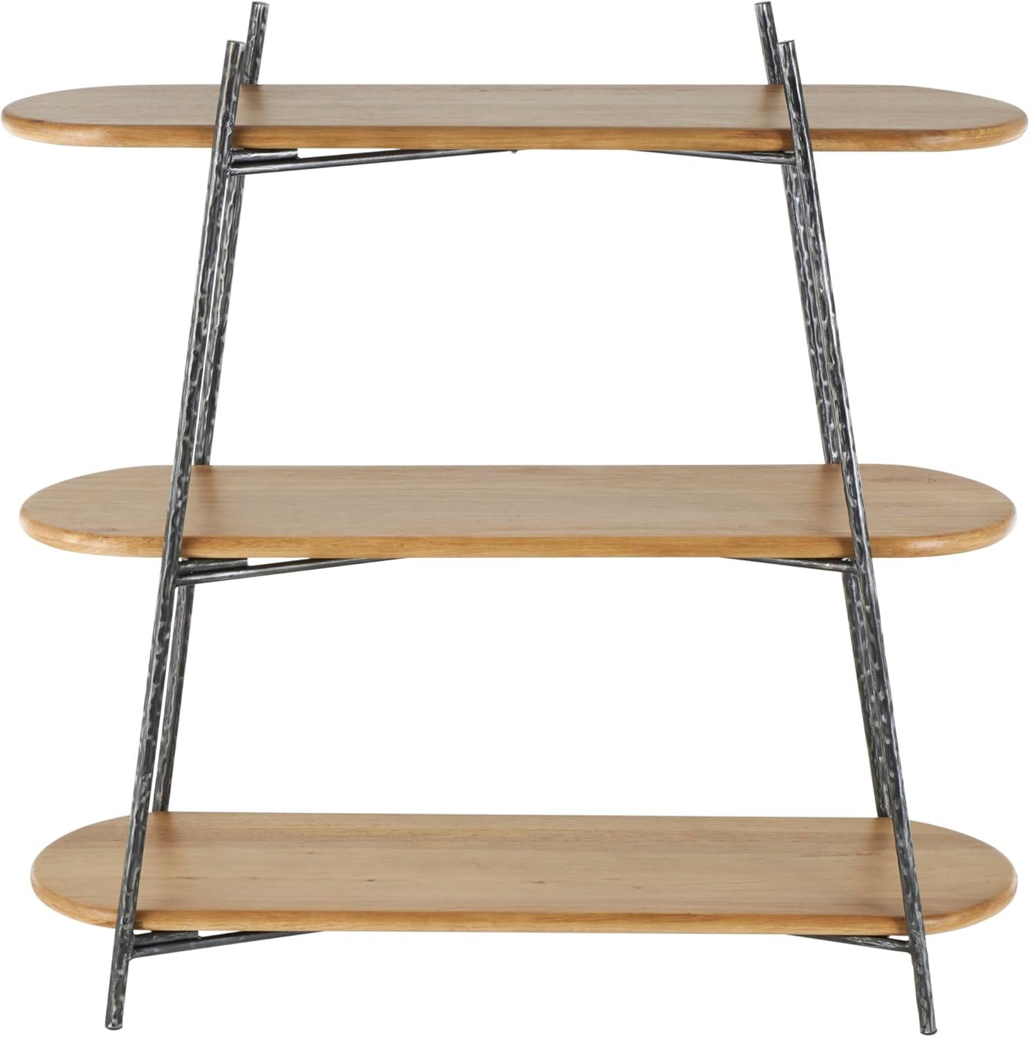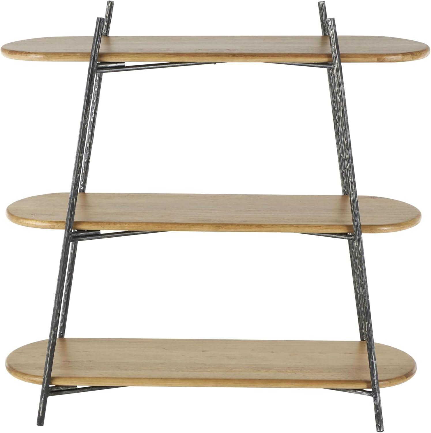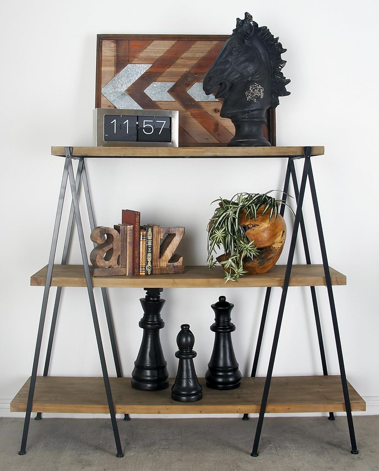 Deco 79 Wood Handmade Storage Shelving Unit Folding 3 Shelf Shelving Unit with Silver Metal Hardware, Display Shelf 63″ x 22″ x 71″, Brown(Black)