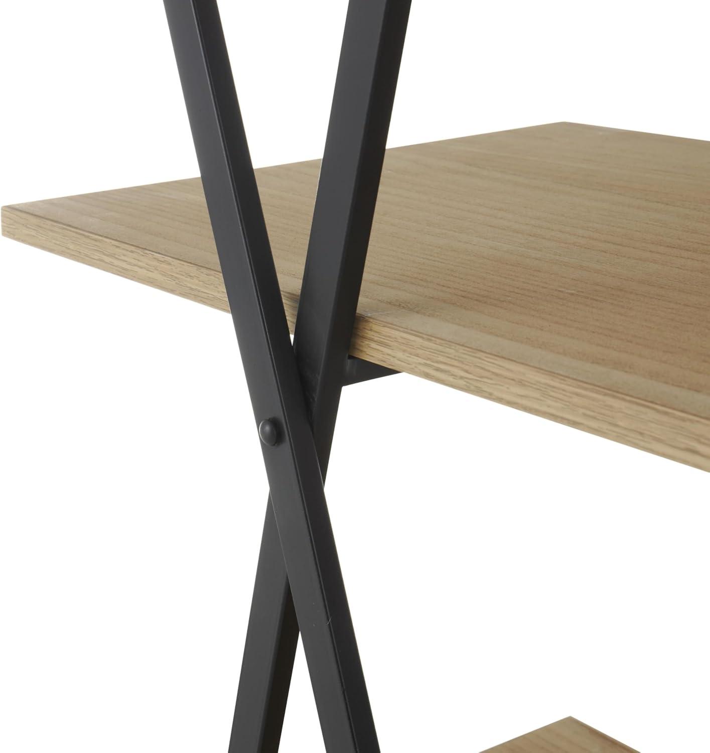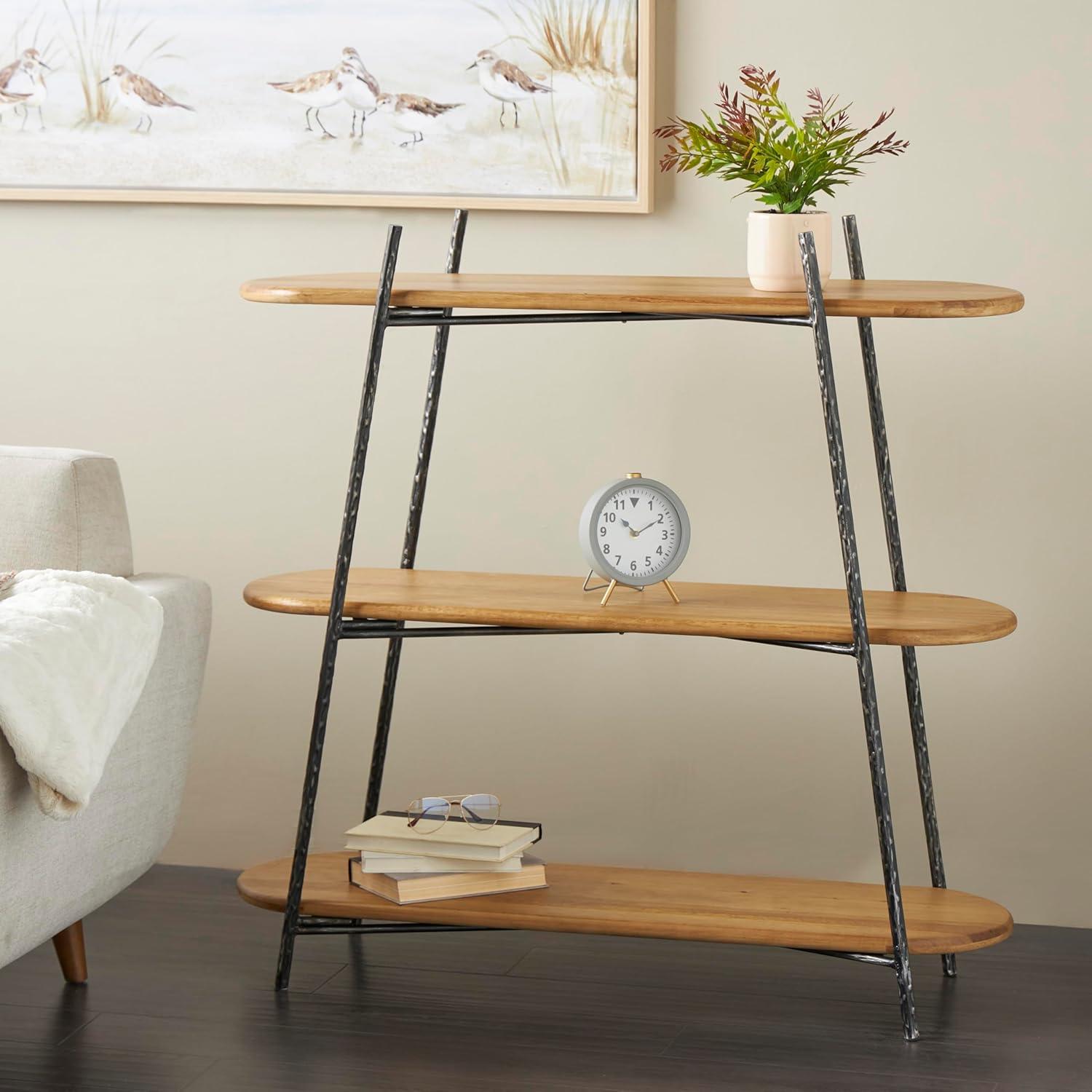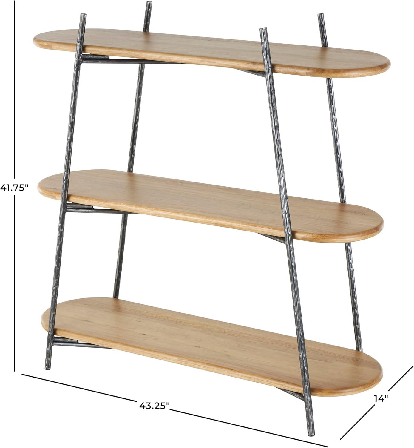 Deco 79 Wood Handmade Storage Shelving Unit Folding 3 Shelf Shelving Unit with Silver Metal Hardware, Display Shelf 63″ x 22″ x 71″, Brown(Black)
