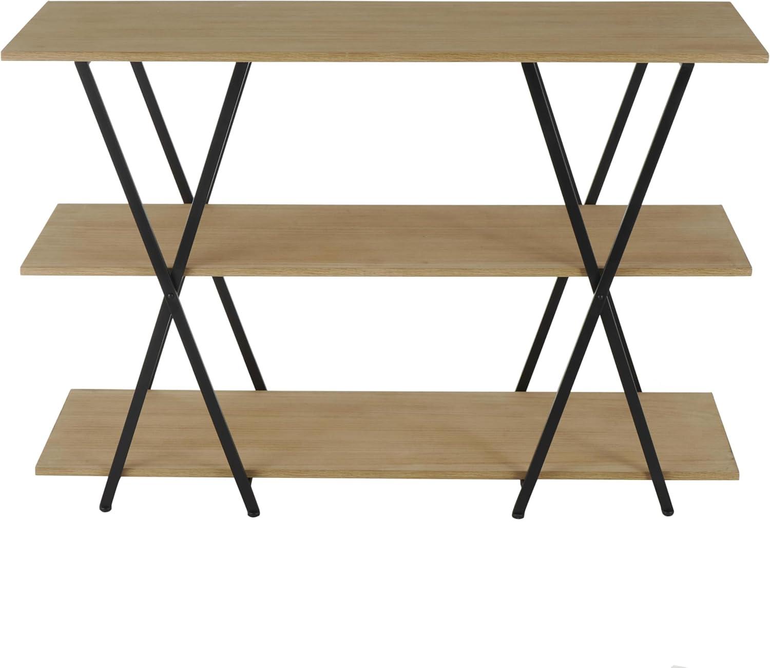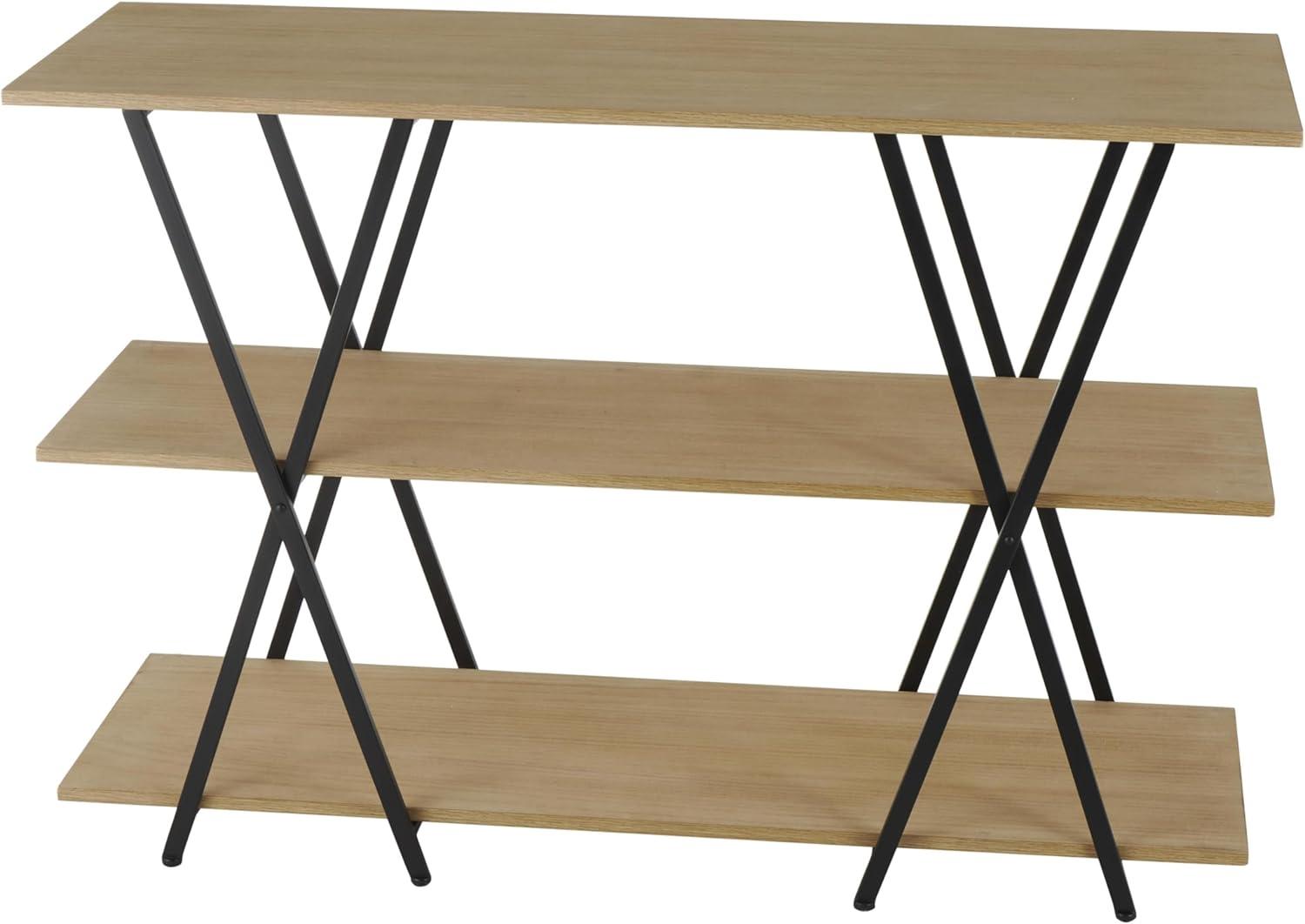 image:imageDeco 79 Wood Handmade Storage Shelving Unit Folding 3 Shelf Shelving Unit with Silver Metal Hardware Display Shelf 63 x 22 x 71 BrownBlack