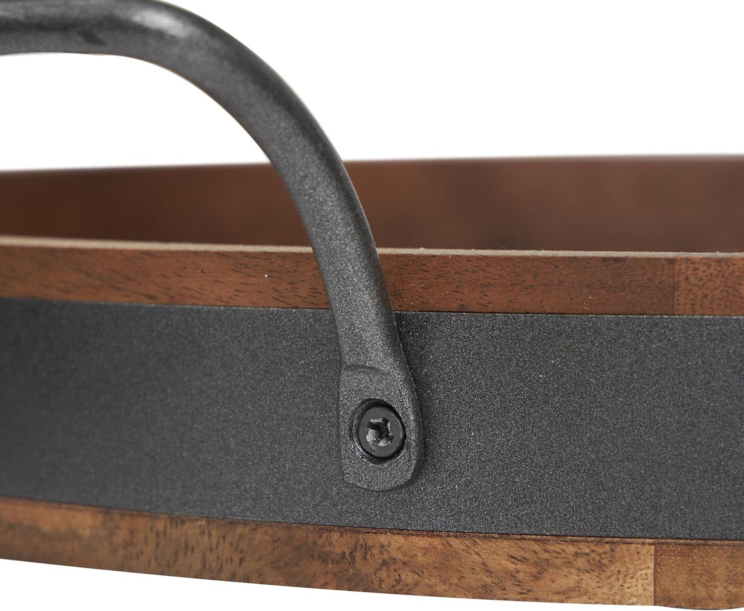 Deco 79 Wood Living Room Decor Tray Nesting Ottoman Tray with Black Metal Handles, Set of 3 Serving Tray 22″, 19″, 18″ W, Brown(Brown)