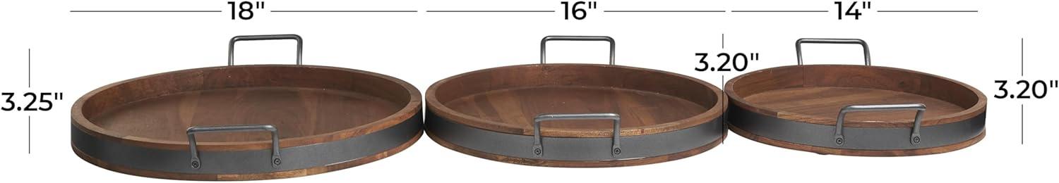Deco 79 Wood Living Room Decor Tray Nesting Ottoman Tray with Black Metal Handles, Set of 3 Serving Tray 22", 19", 18" W, Brown(Brown)