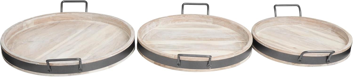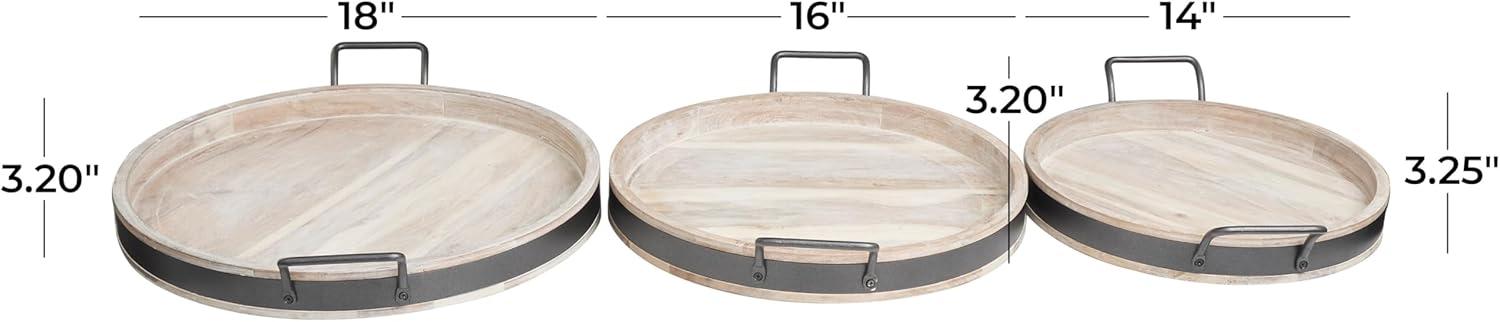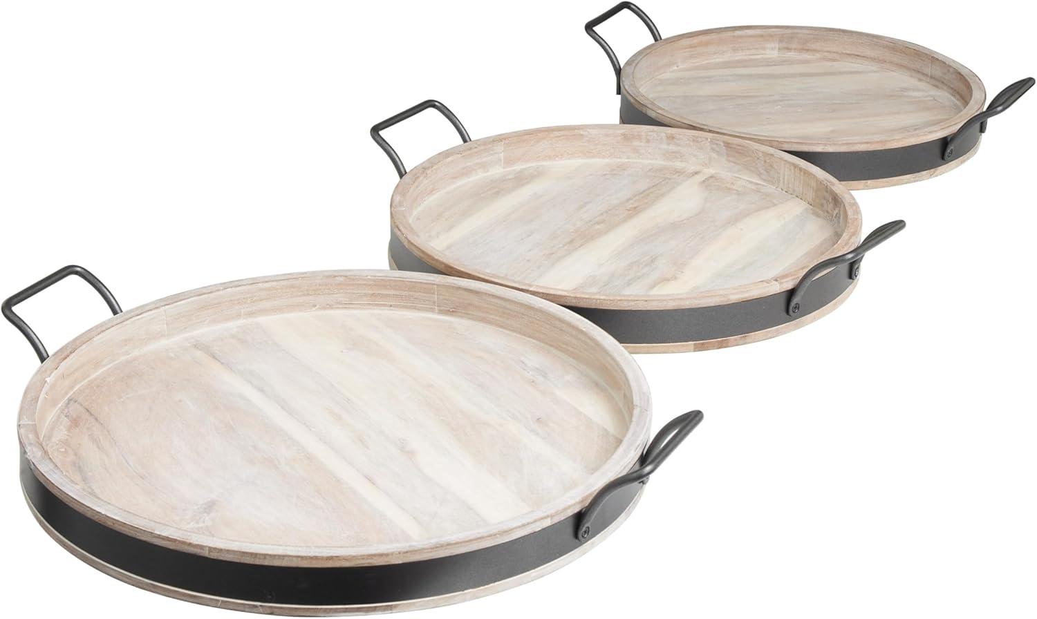 Deco 79 Wood Living Room Decor Tray Nesting Ottoman Tray with Black Metal Handles, Set of 3 Serving Tray 22″, 19″, 18″ W, Brown(Cream)