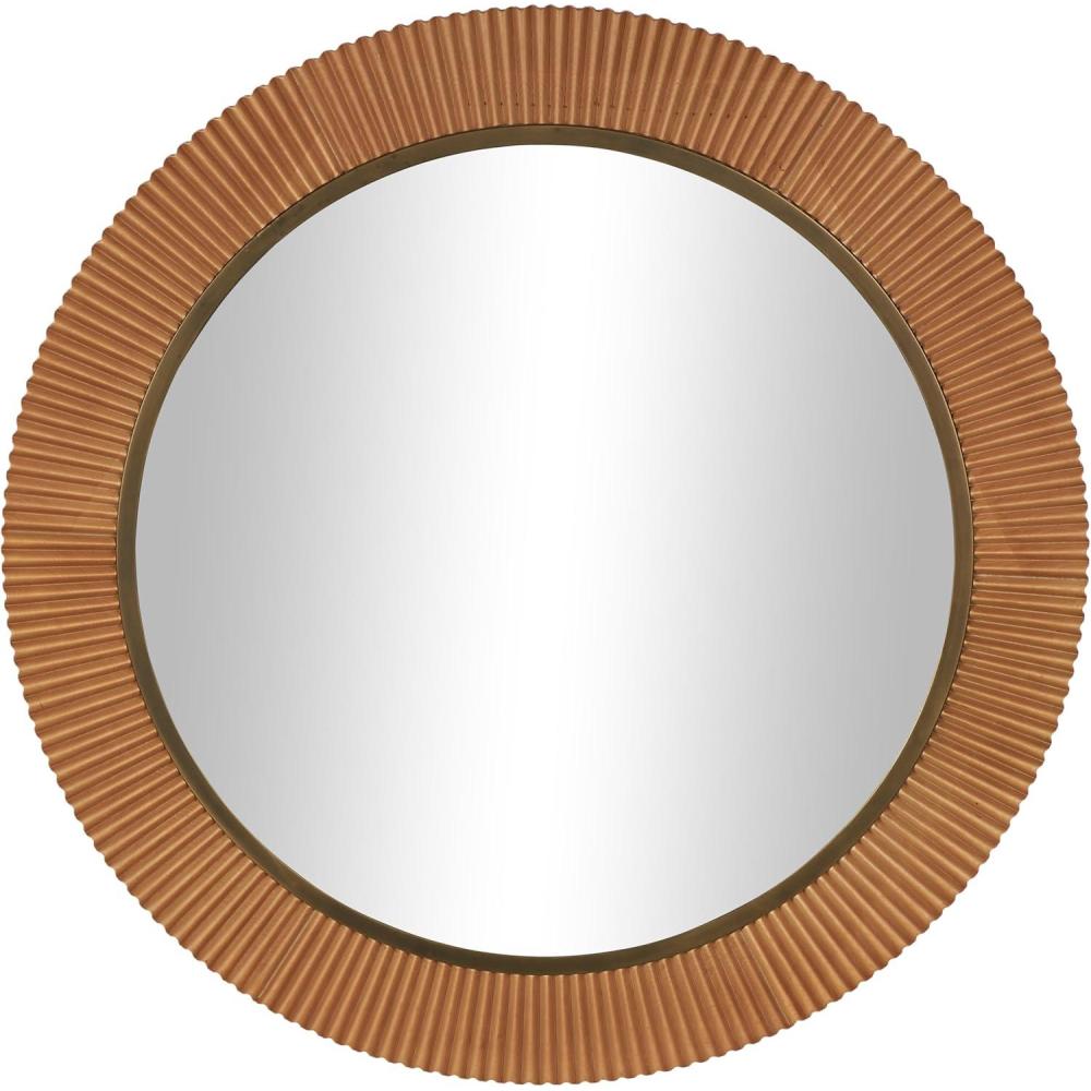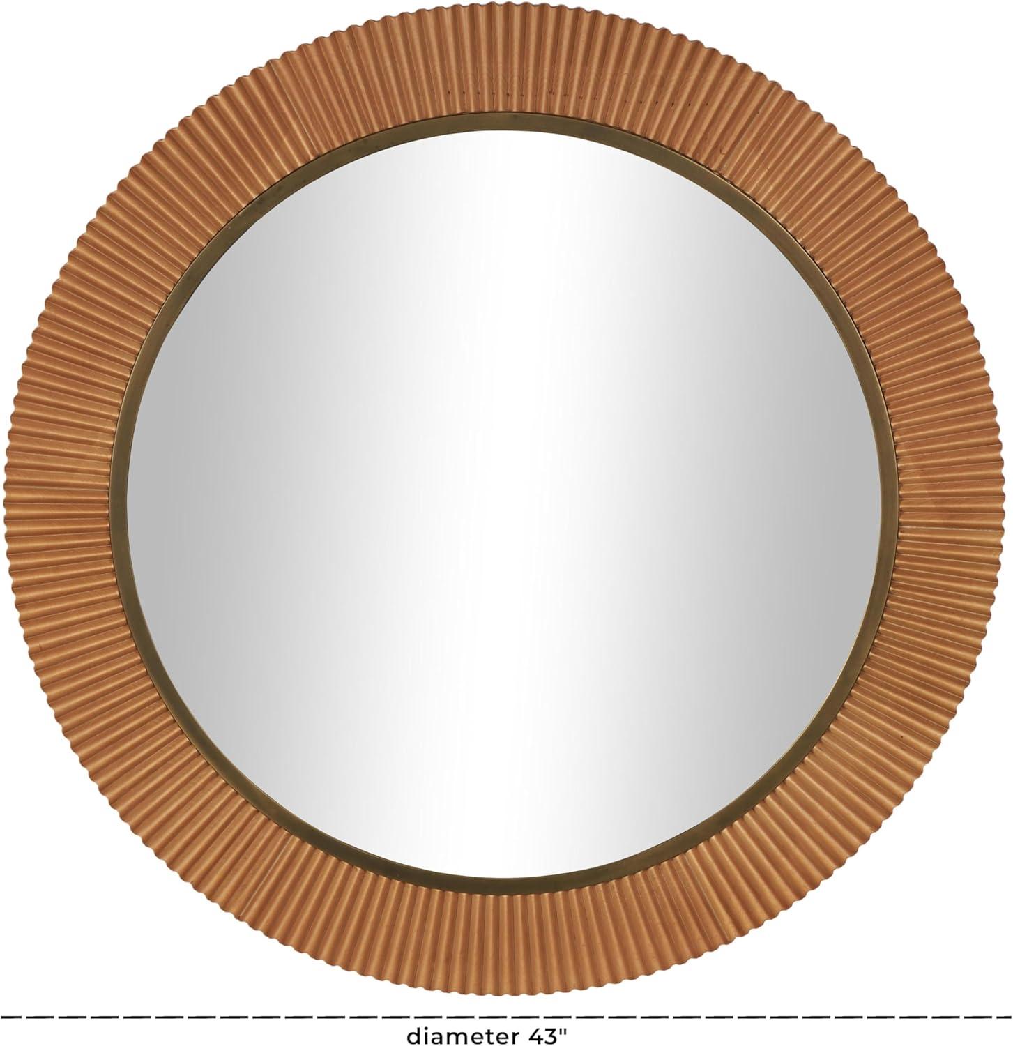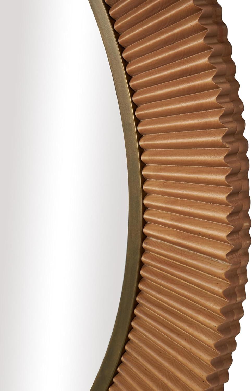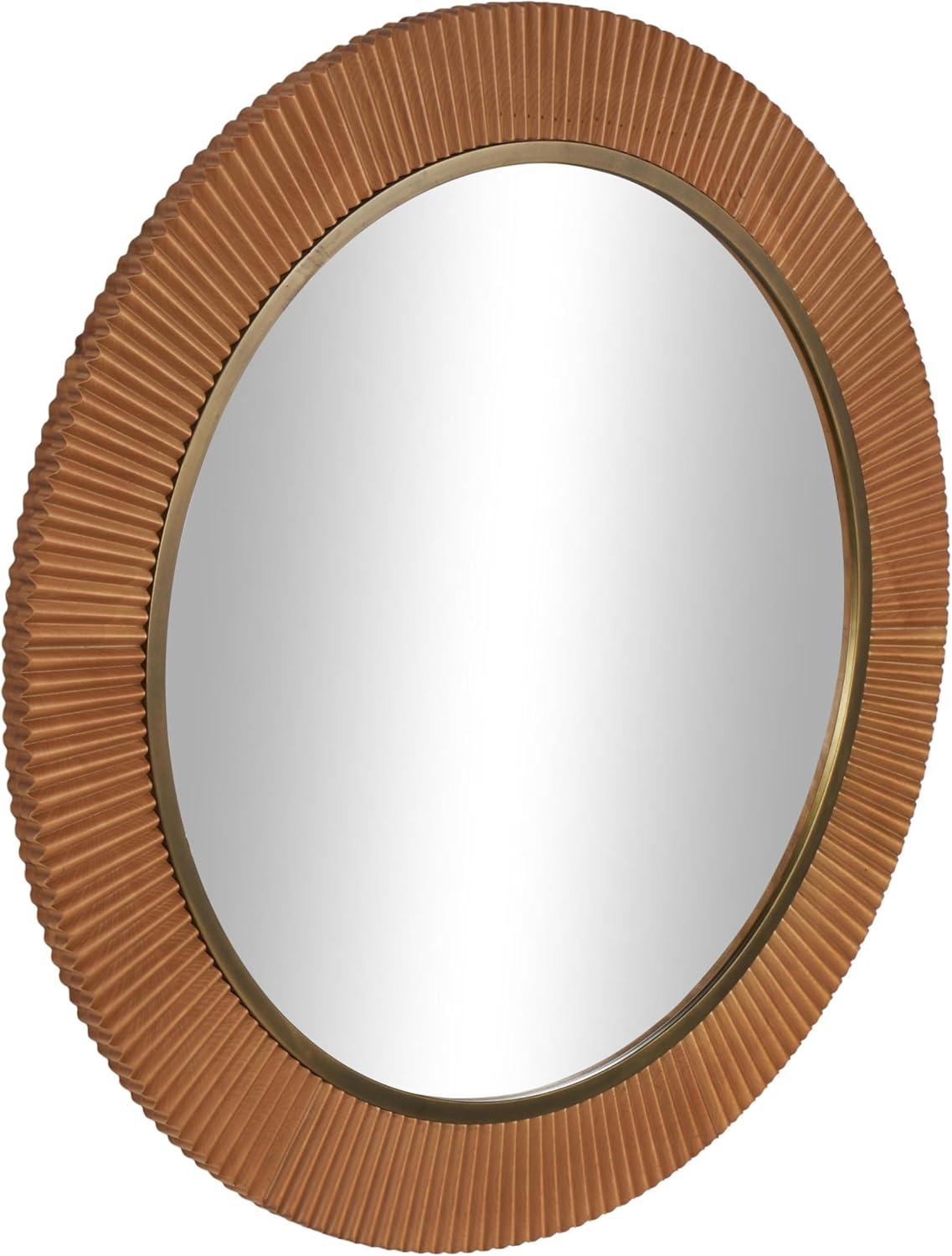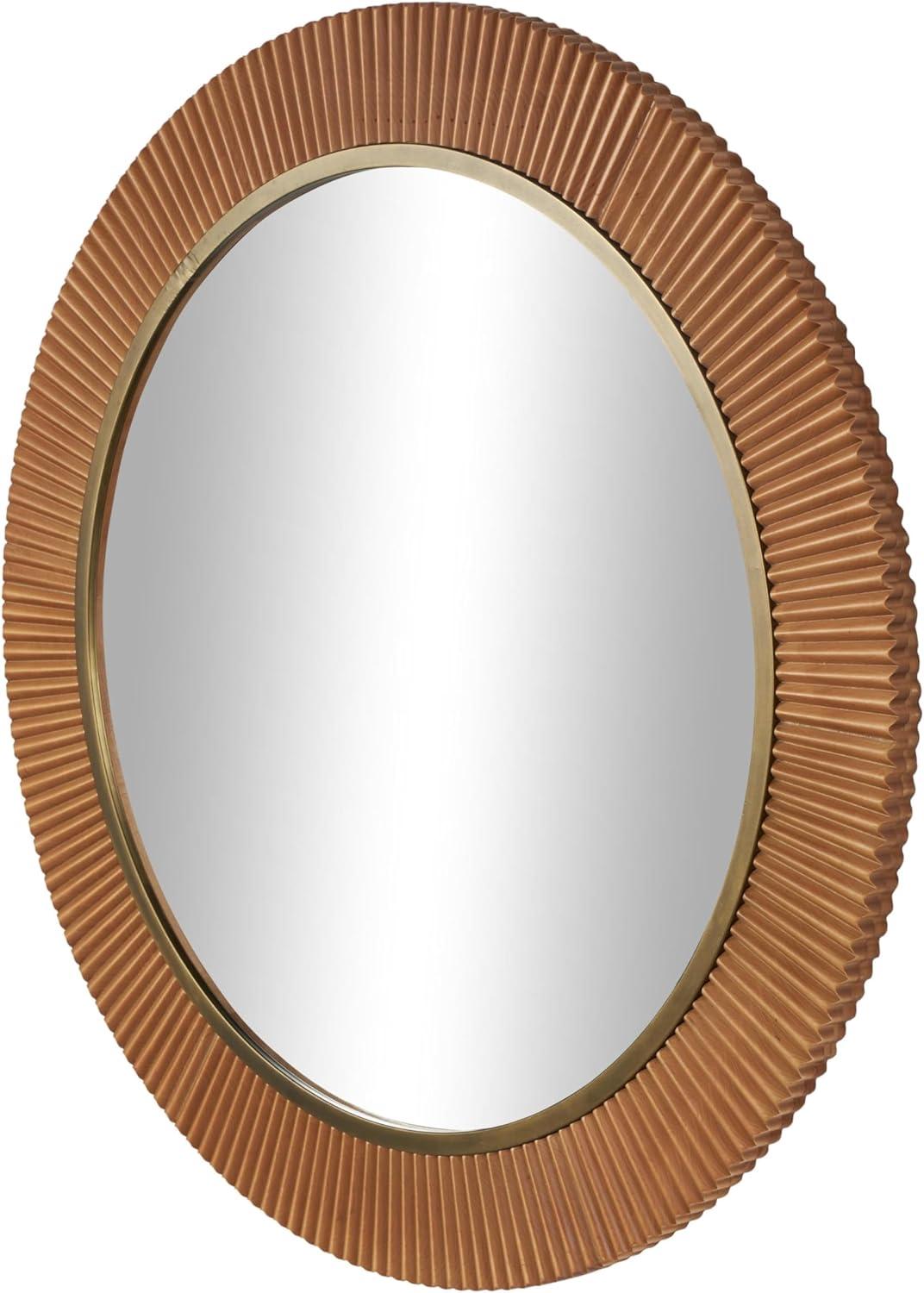 BROWN AND BRASS MIRROR FOR WALL: Fluted wall mirror with features a rich brown color with an inner section of gold and a matte finish, perfectly capturing the rustic appeal of farmhouse style