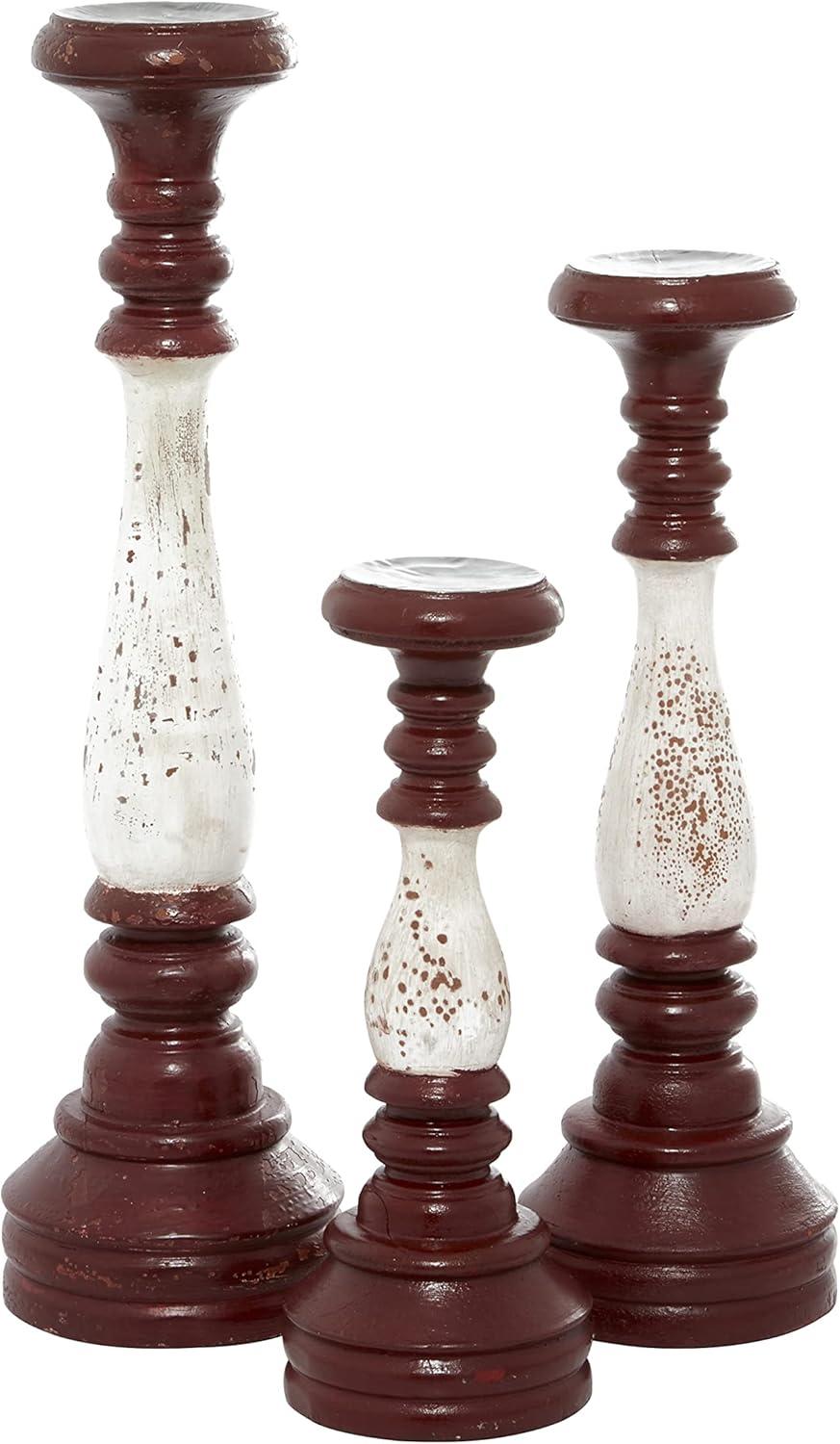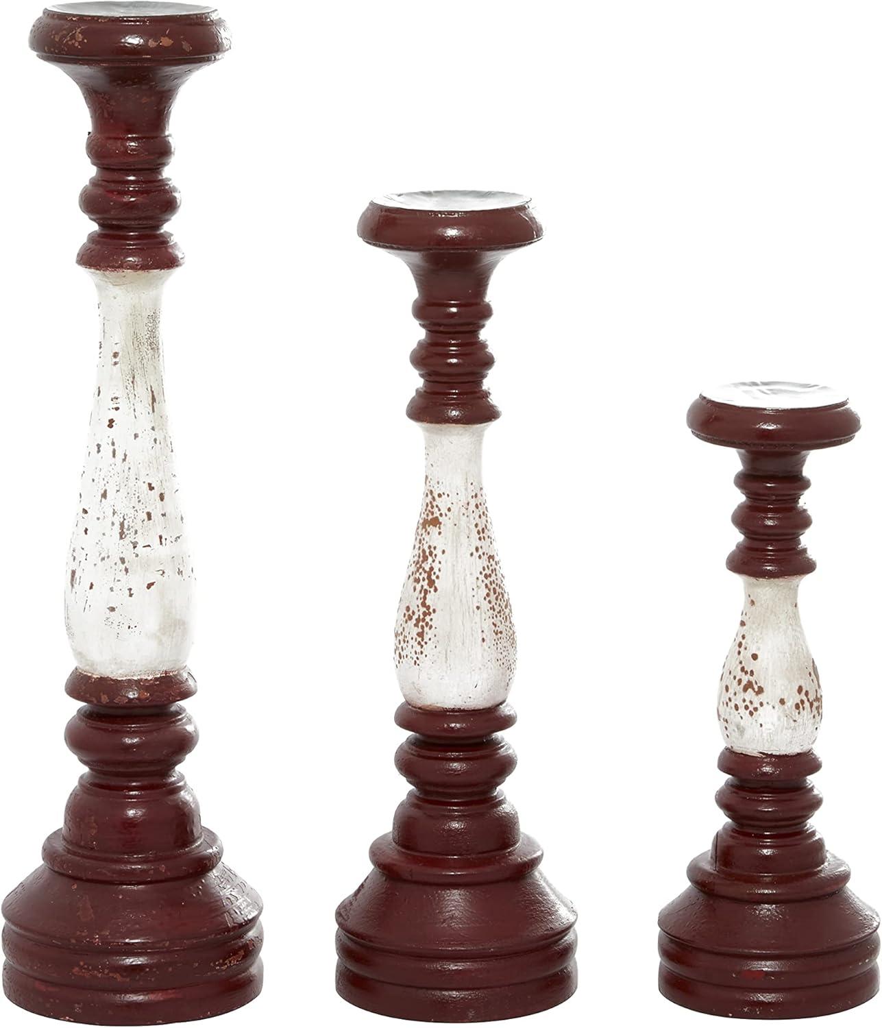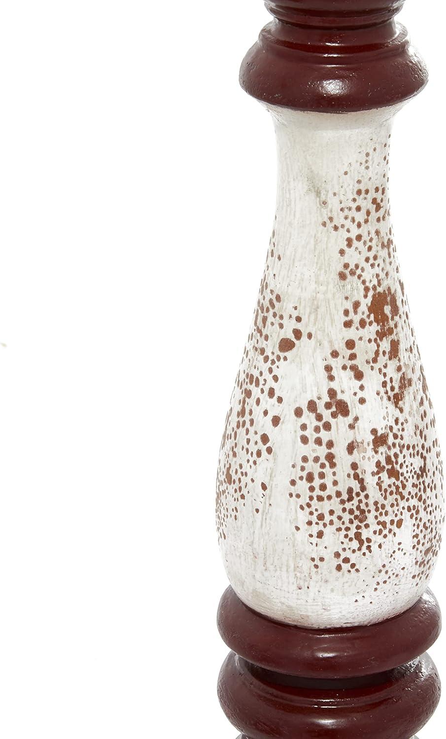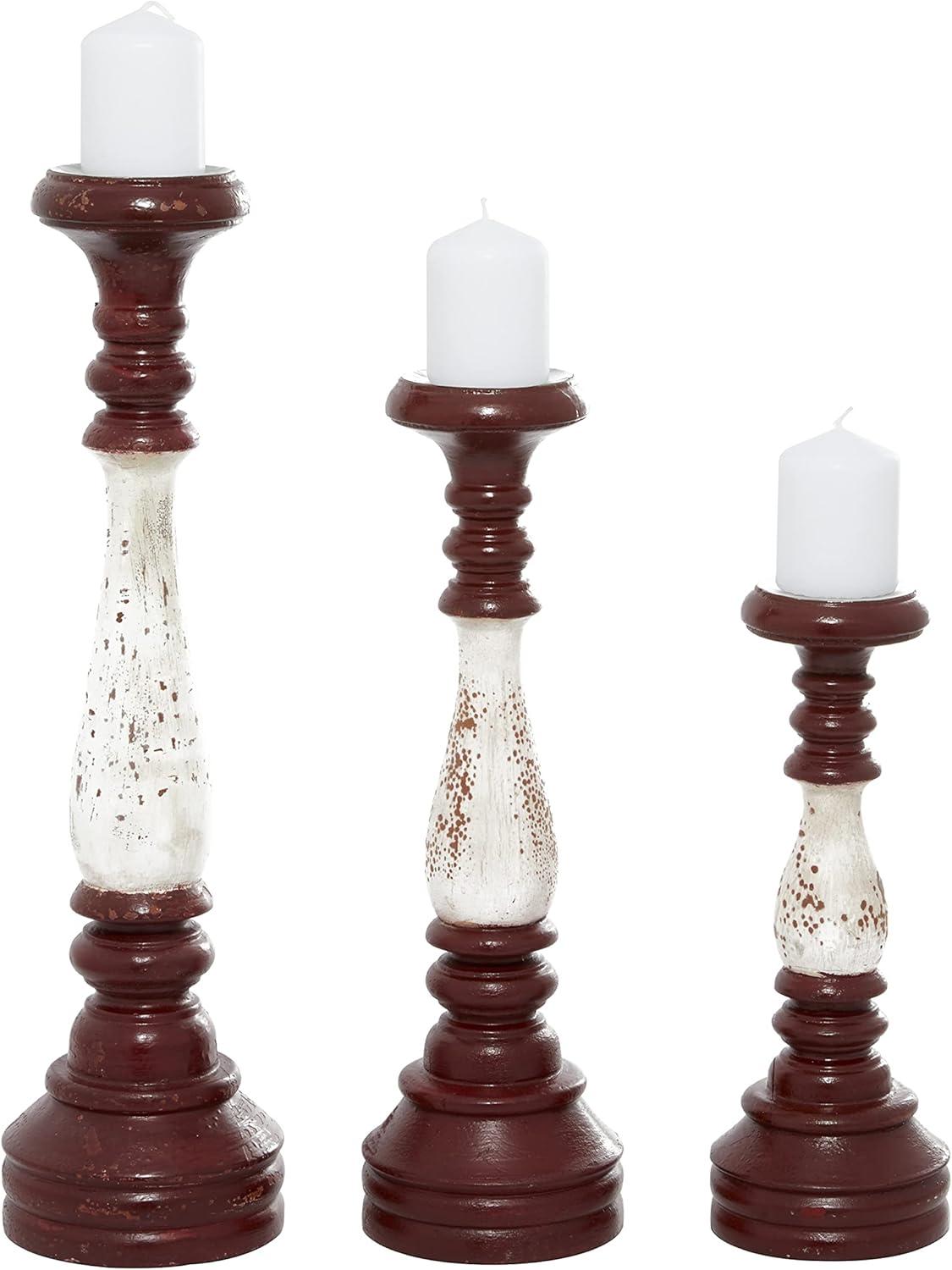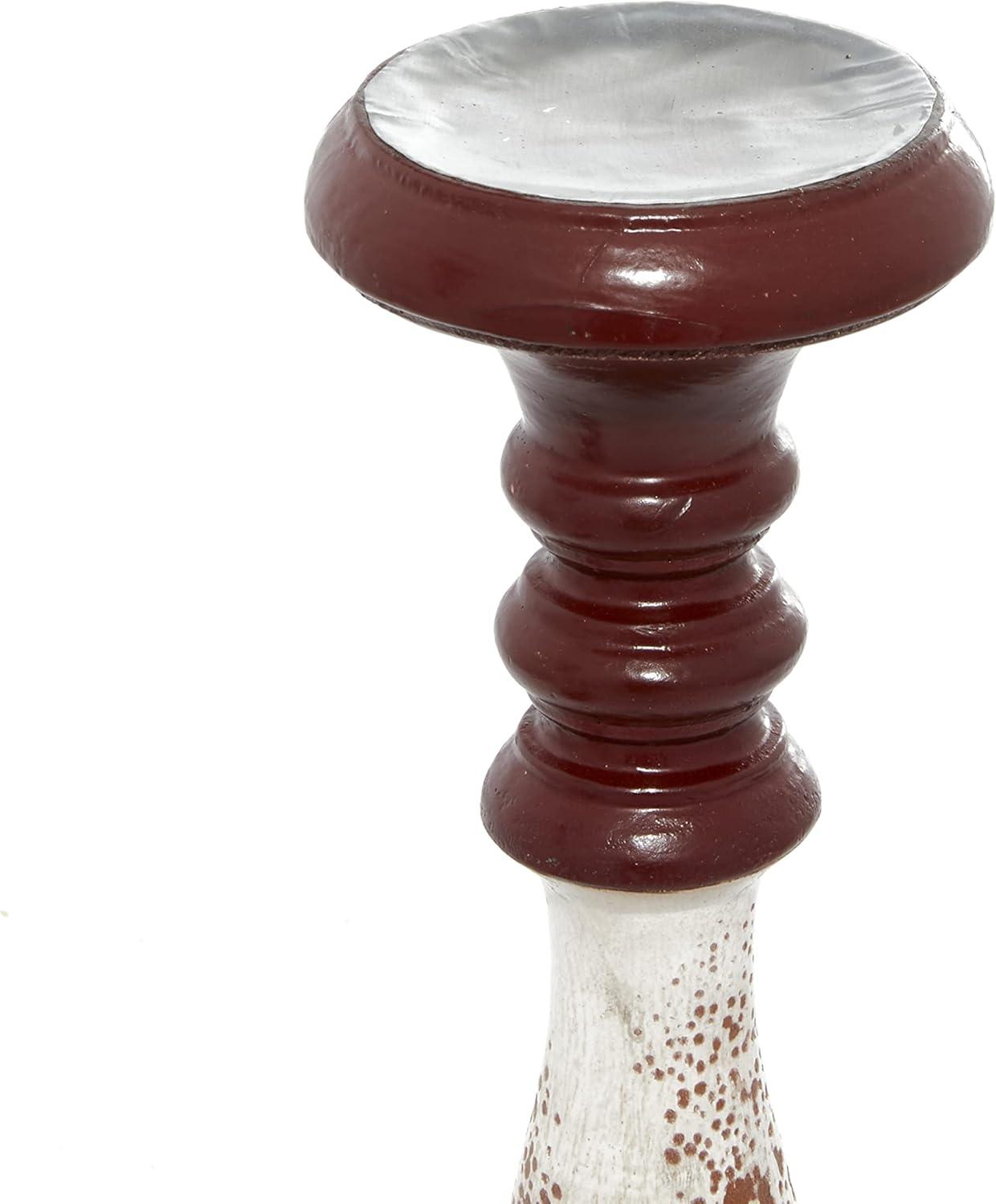 This table's petite stature with handles and tray like design ensure no items will slip away. Their unique vintage color makes them a focal point decor for the living room & the master's bedroom. Each pillar candle holder can accommodate 1 votive candle. This item comes shipped in 1 carton. Suitable for indoor use only. Made in Indonesia. Each set contains 3 candle holders, candles not included. Farmhouse-themed style.