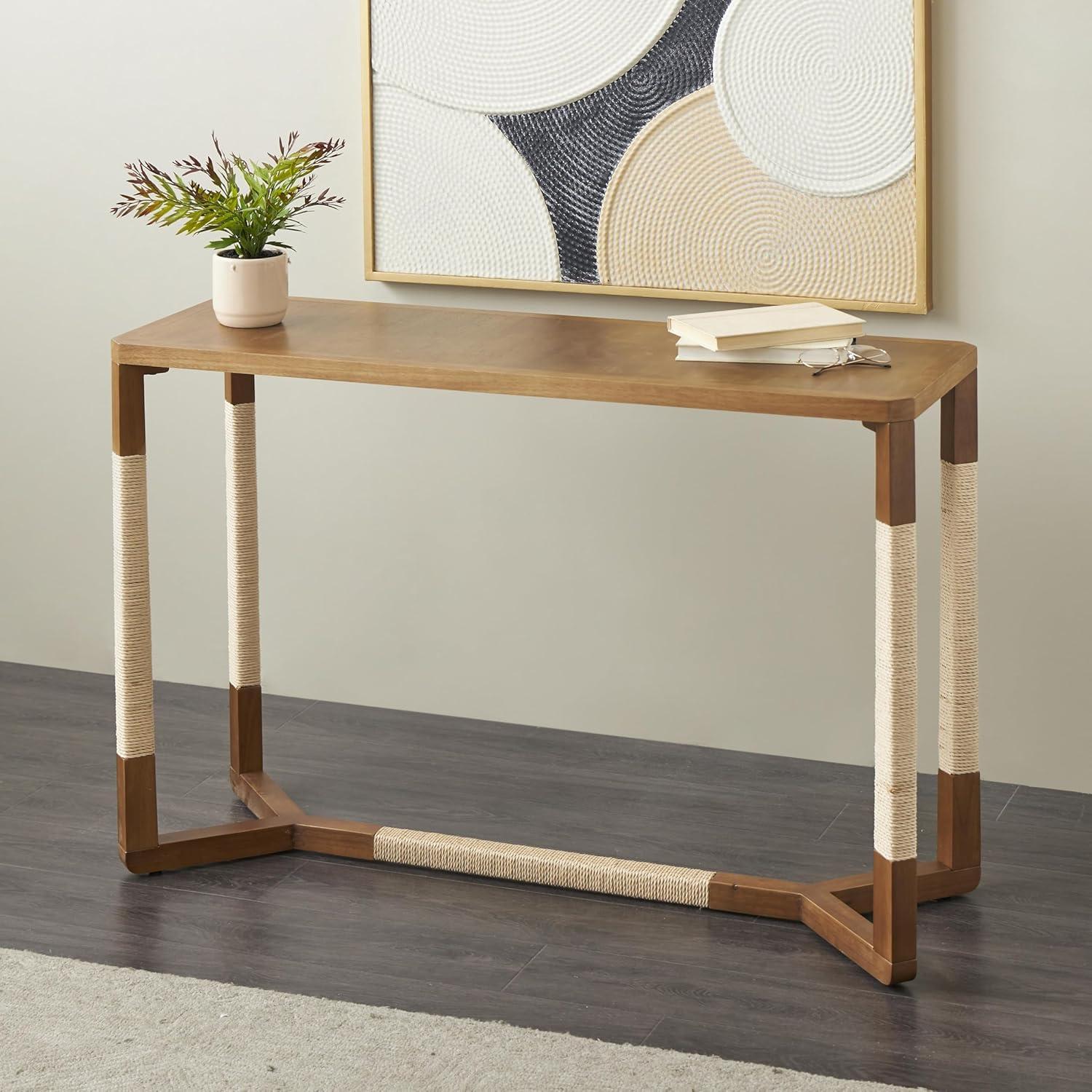 Deco 79 Wooden Console Table with Rope Wrapped Frame, 47" x 16" x 31", Brown(Brown)