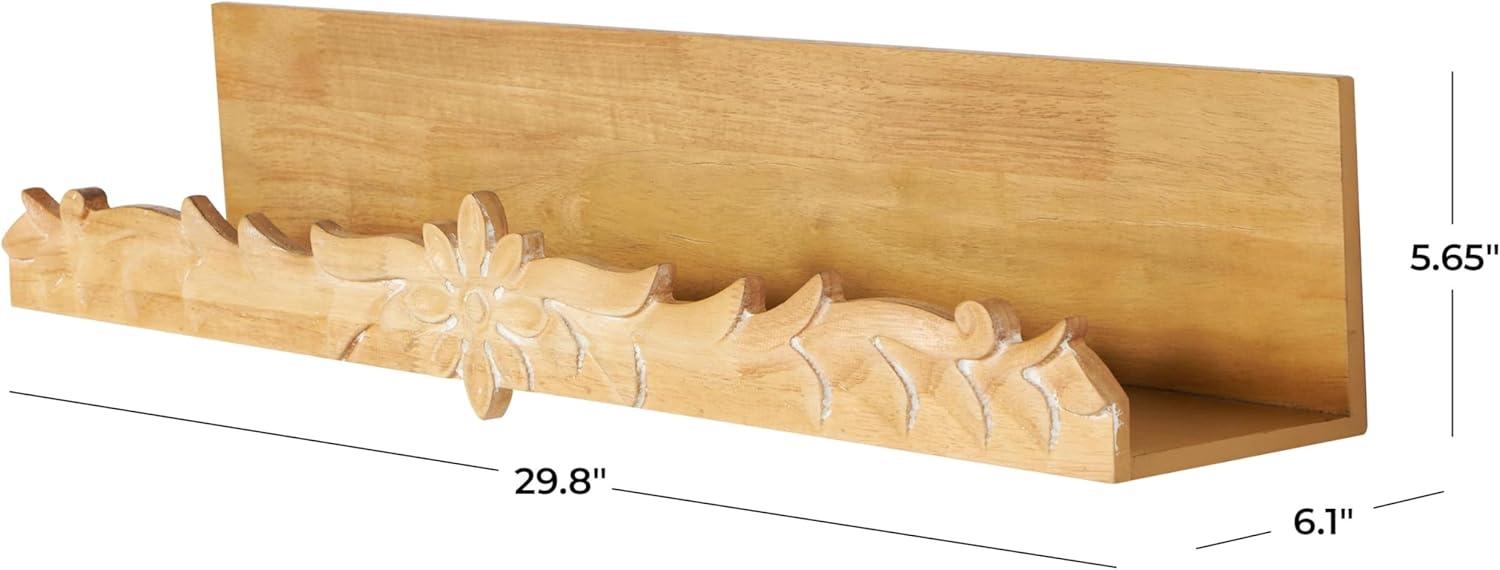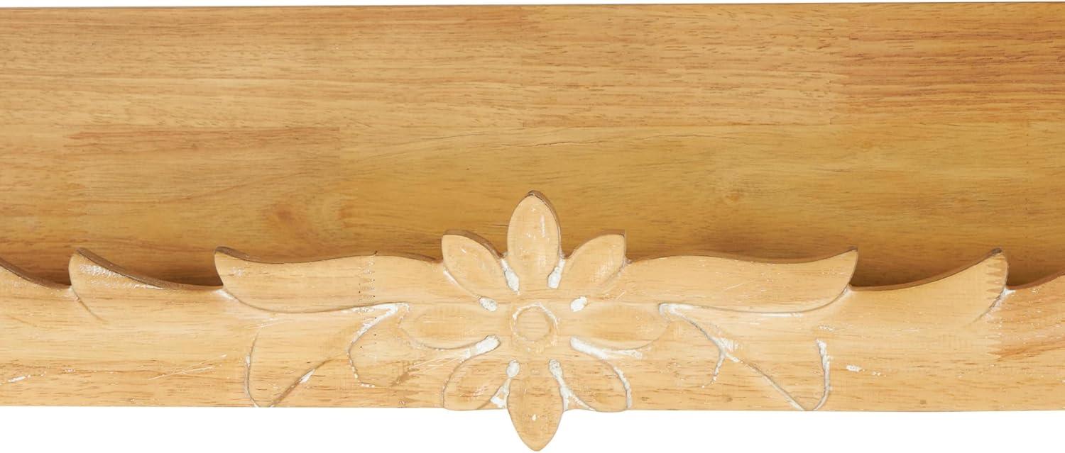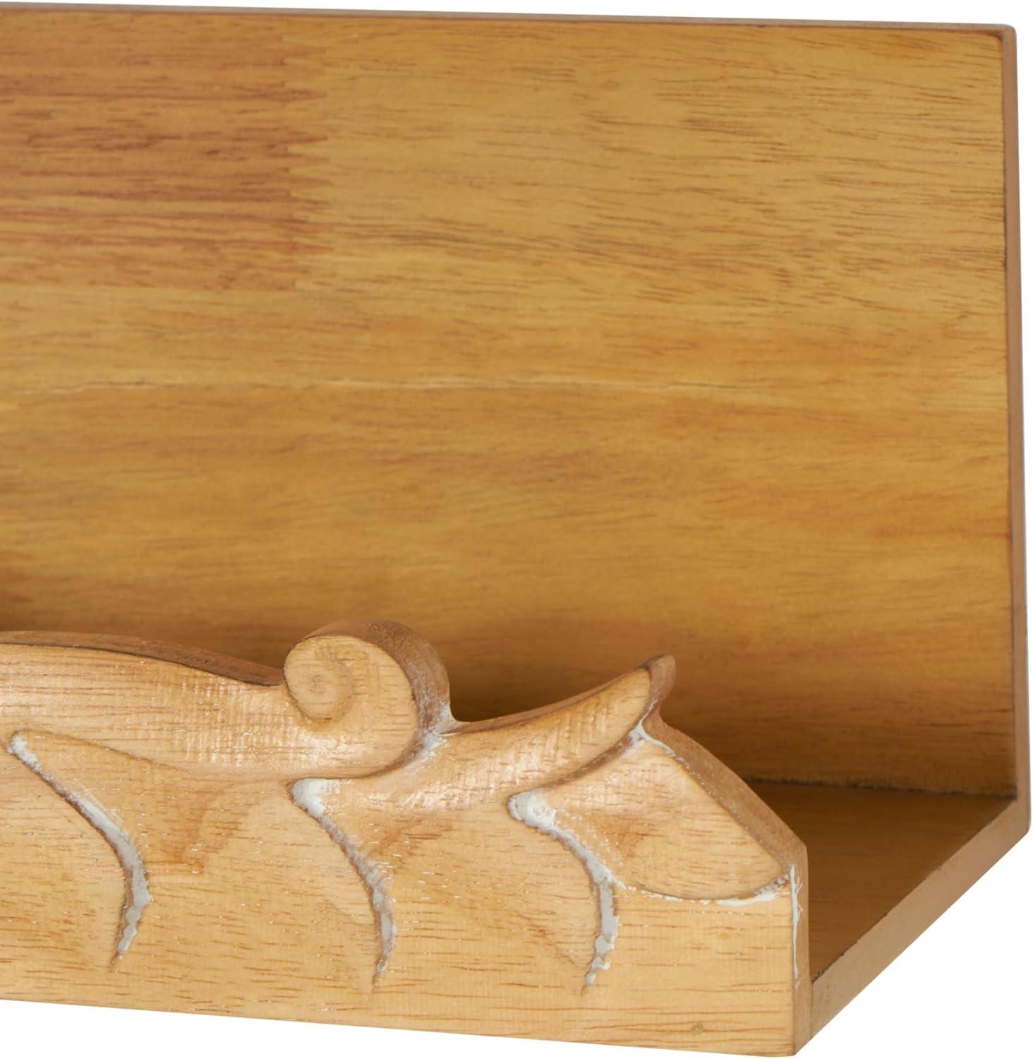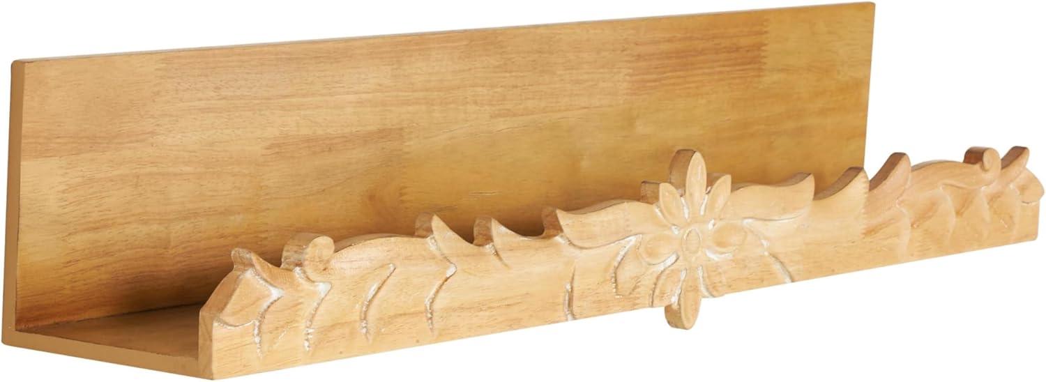 FLORAL RECTANGLE WALL SHELF: One of its distinctive features of this floral wall shelf includes a beautifully carved scroll lip that adds an artistic touch to the shelf