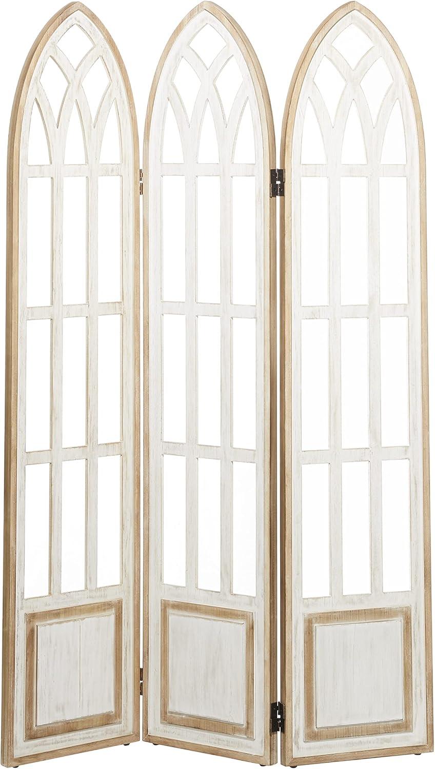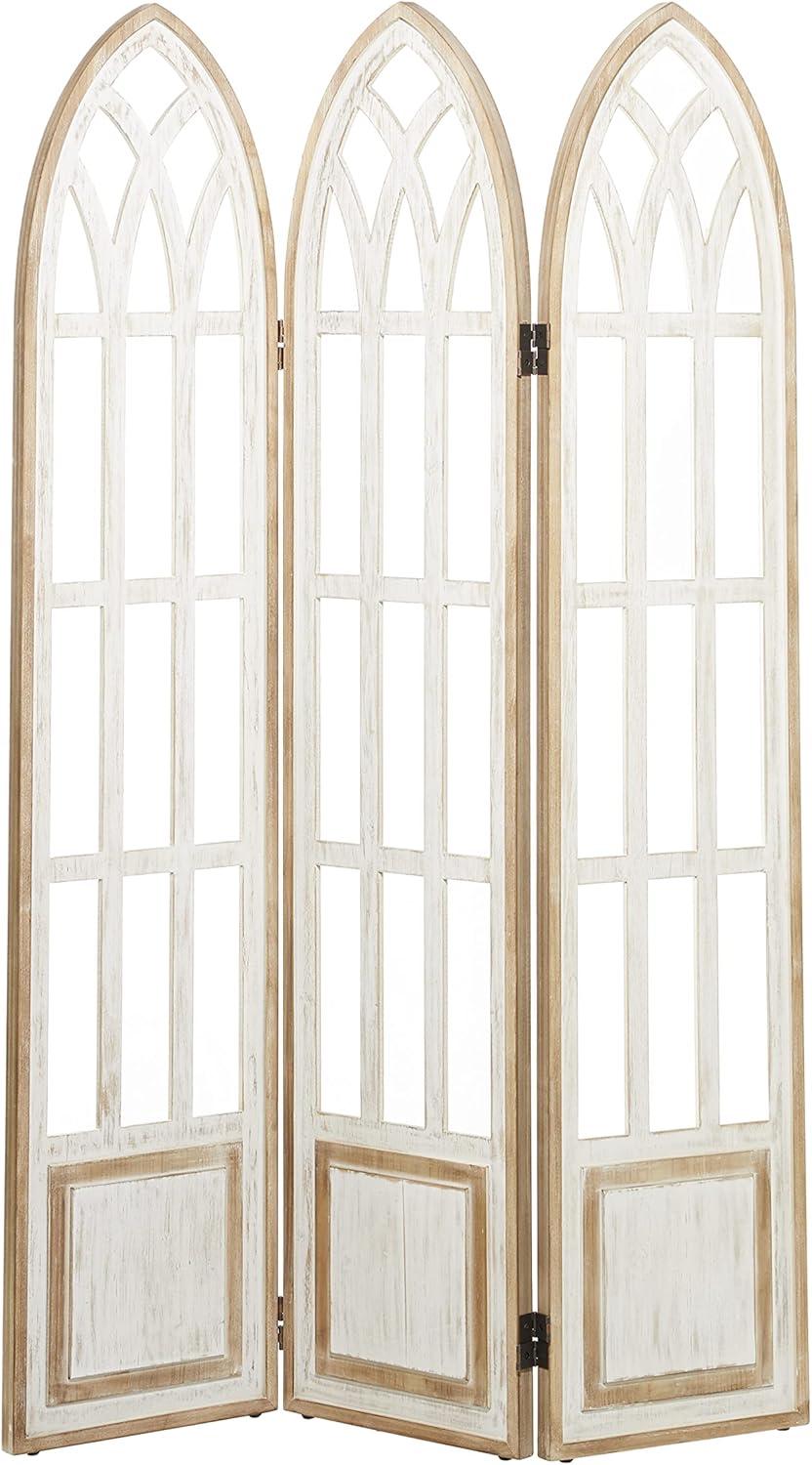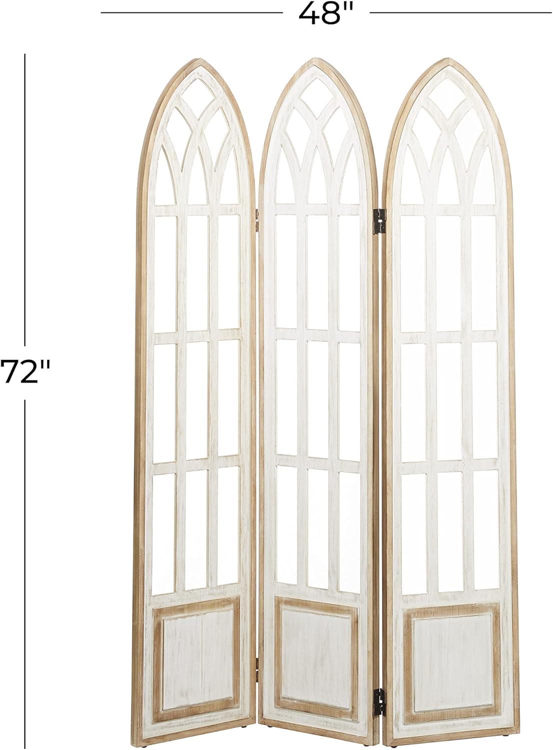 Deco 79 Wooden Geometric Handmade Partition Room Divider Screen Arched Foldable 3 Panel Privacy Screen with Woven Circular Cutouts, Room Partition 55" x 2" x 71", Black(White)