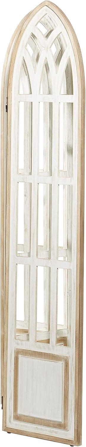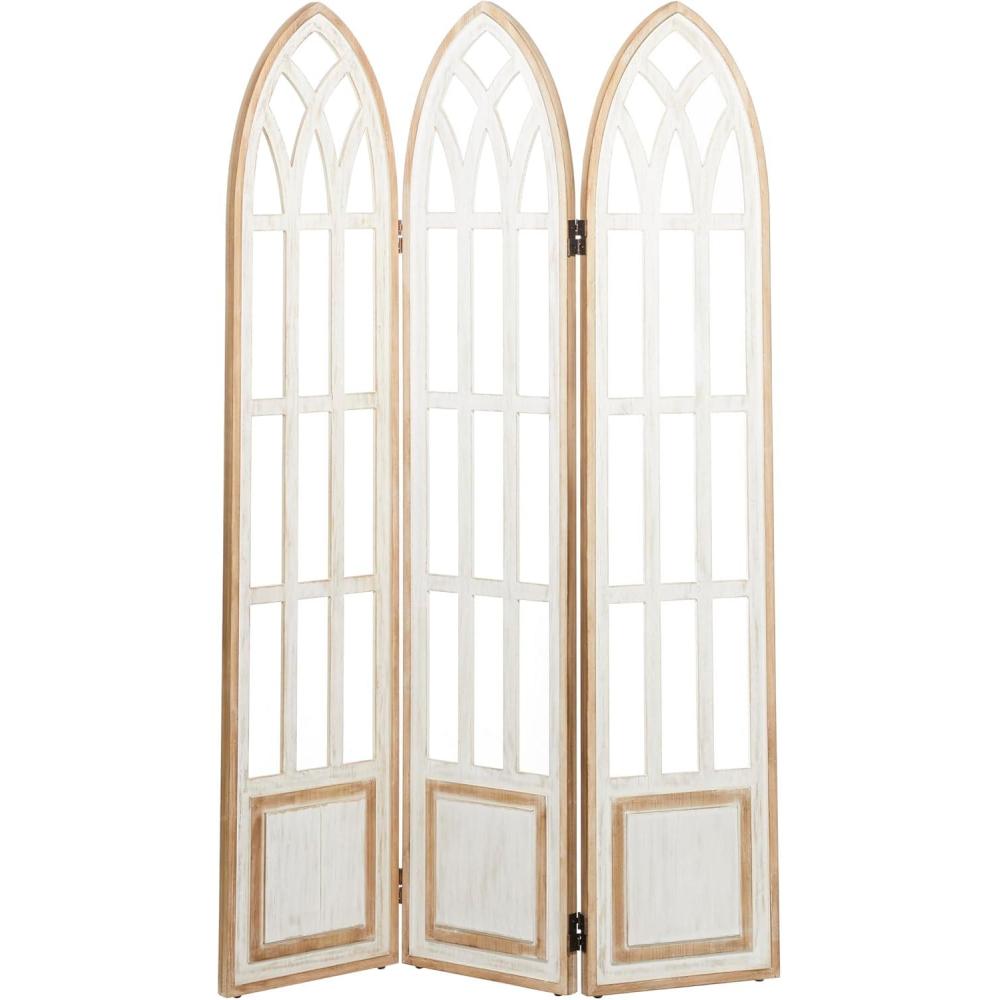 Deco 79 Wooden Geometric Handmade Partition Room Divider Screen Arched Foldable 3 Panel Privacy Screen with Woven Circular Cutouts, Room Partition 55″ x 2″ x 71″, Black(White)