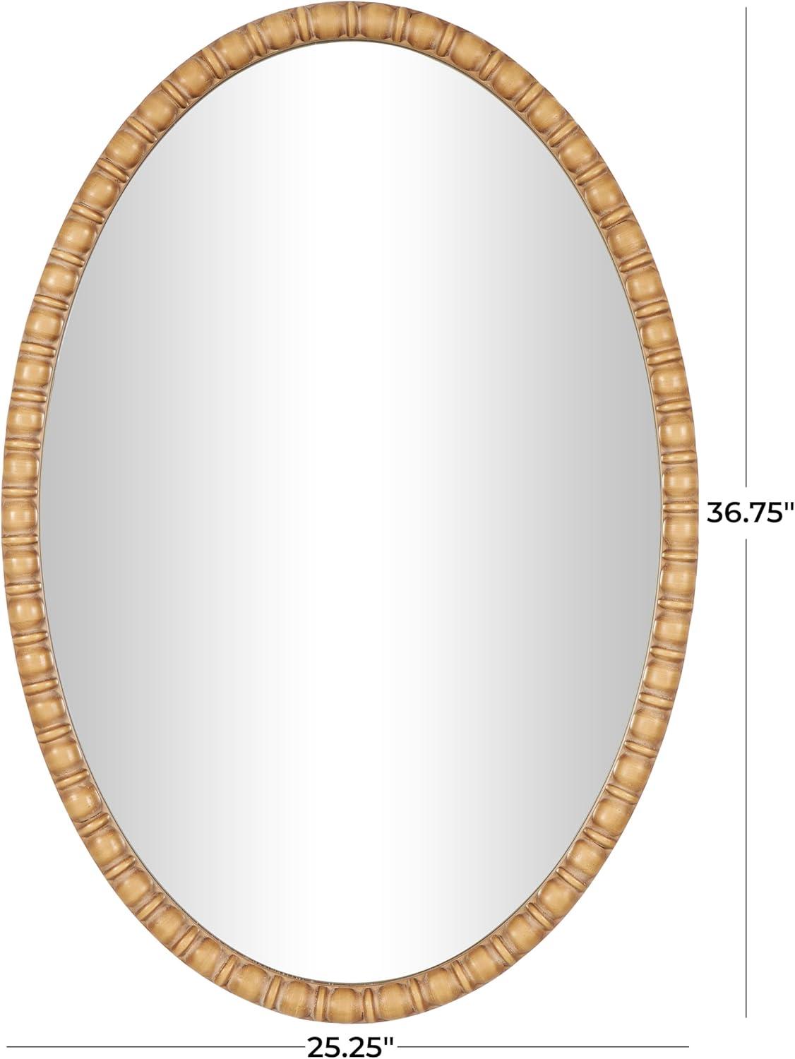 BROWN AND MIRROR WASHED FINISH This beautiful bohemian oval wall mirror features a brown wood like frame with beaded inspired detailing