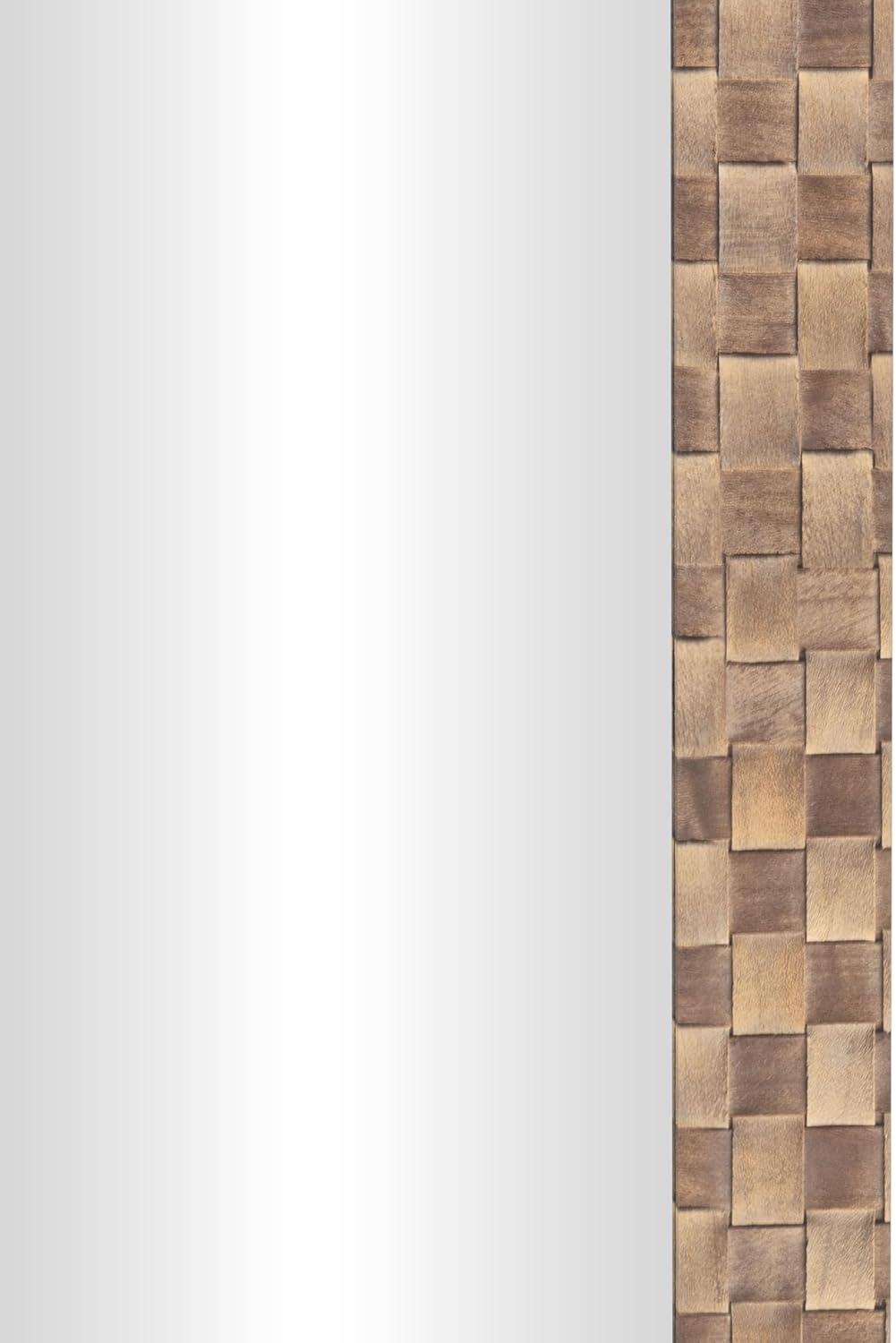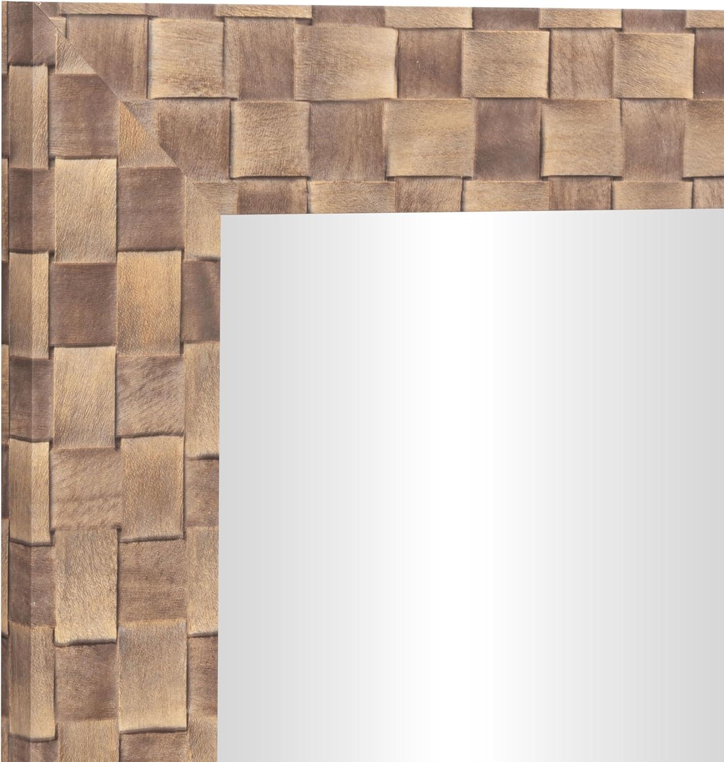 image:imageDeco 79 Wooden Room Wall Mirror Entryway Mirror with Checkered Pattern Frame Wall Mounted Mirror 22 x 1 x 28 Brown