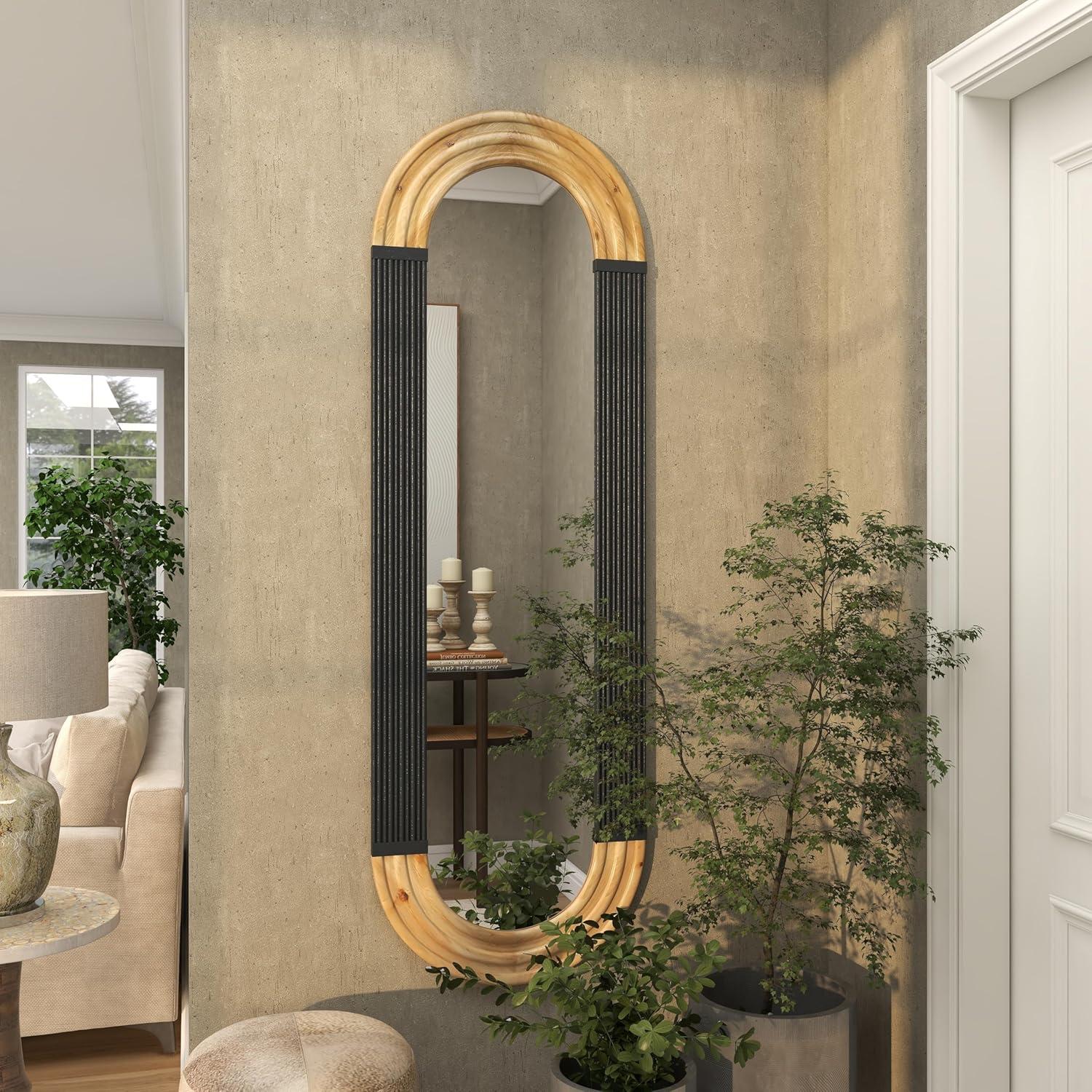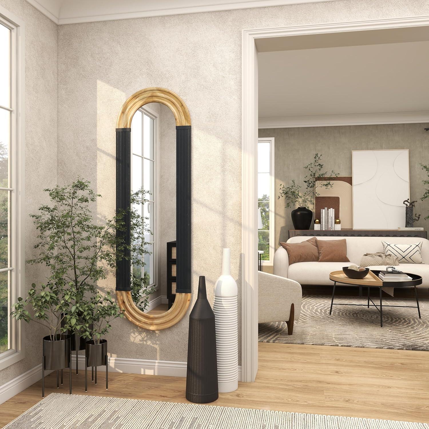 LARGE SIZE MIRROR FOR WALL DÉCOR: The black wooden wall mirror measures 22L x 1.38W x 68.13H inches, and weighs 25.50 lbs