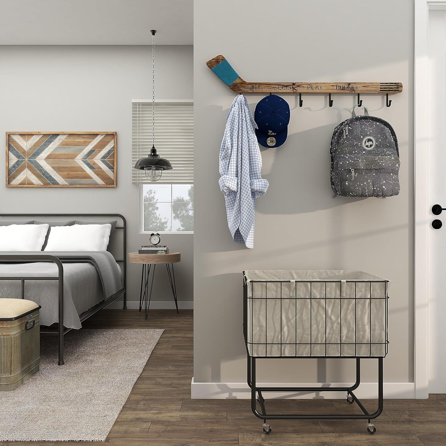 19 inch amazing animals rustic iron row of dogs wall hook rack, distressed finish, cool Blue Gray, moss green, fire engine red, turquoise and mustard Yellow cut-out dog iron silhouettes with curled tailed hooks, affixed to black iron horizontal bar.