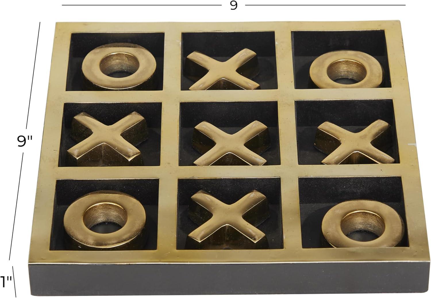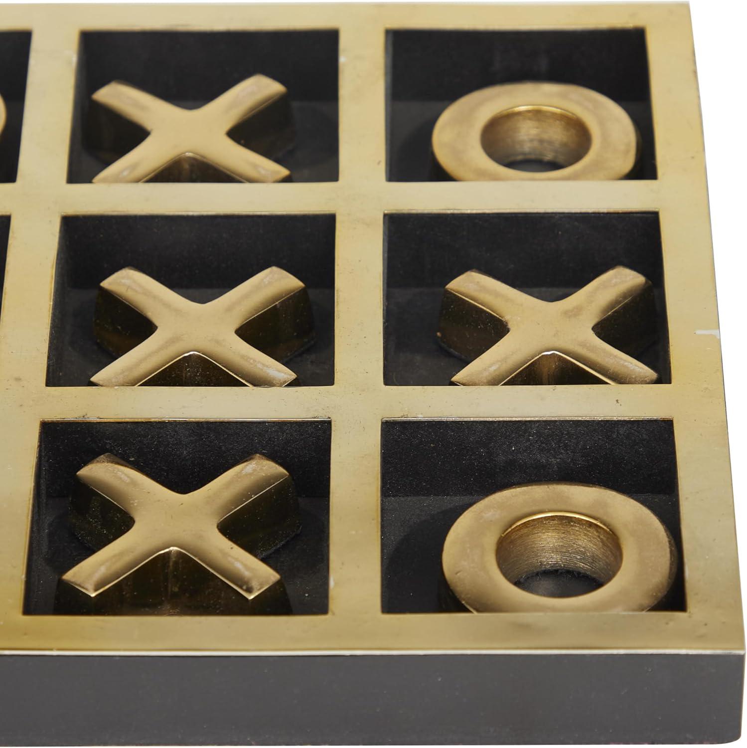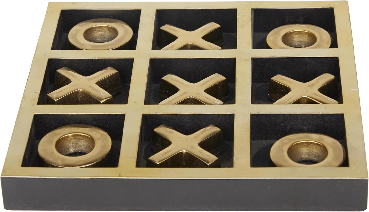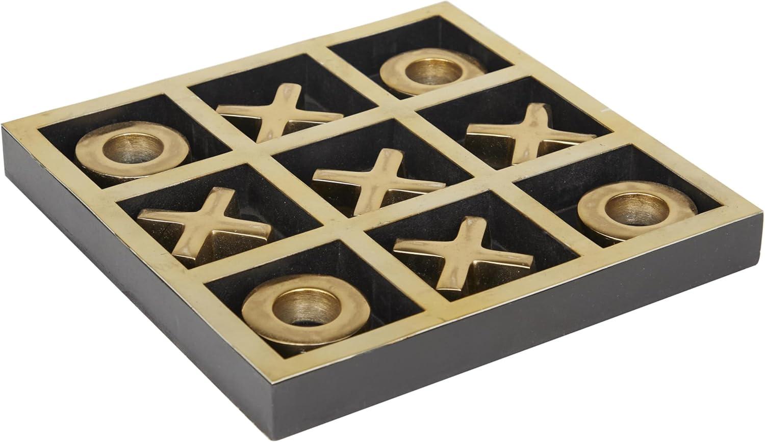 The Novogratz Wood Tic Tac Toe Game Set, 8" x 8" x 1", Black(Gold)
