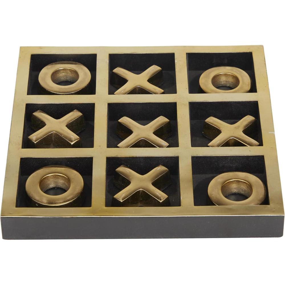 The Novogratz Wood Tic Tac Toe Game Set, 8″ x 8″ x 1″, Black(Gold)